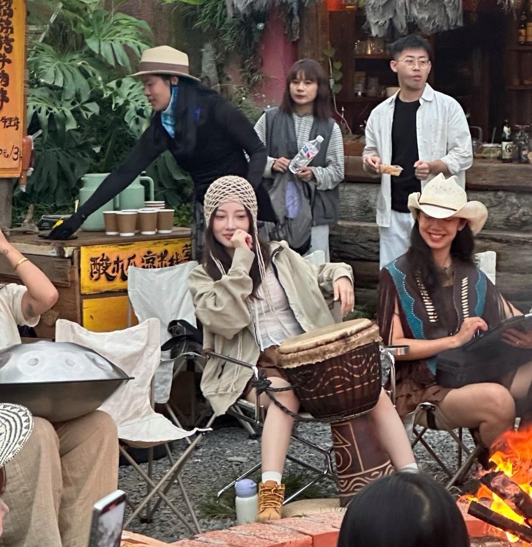 44岁李小璐和闺蜜在云南大理烤火野餐,她的打扮很少女,皮肤白皙,状态看起来非常好