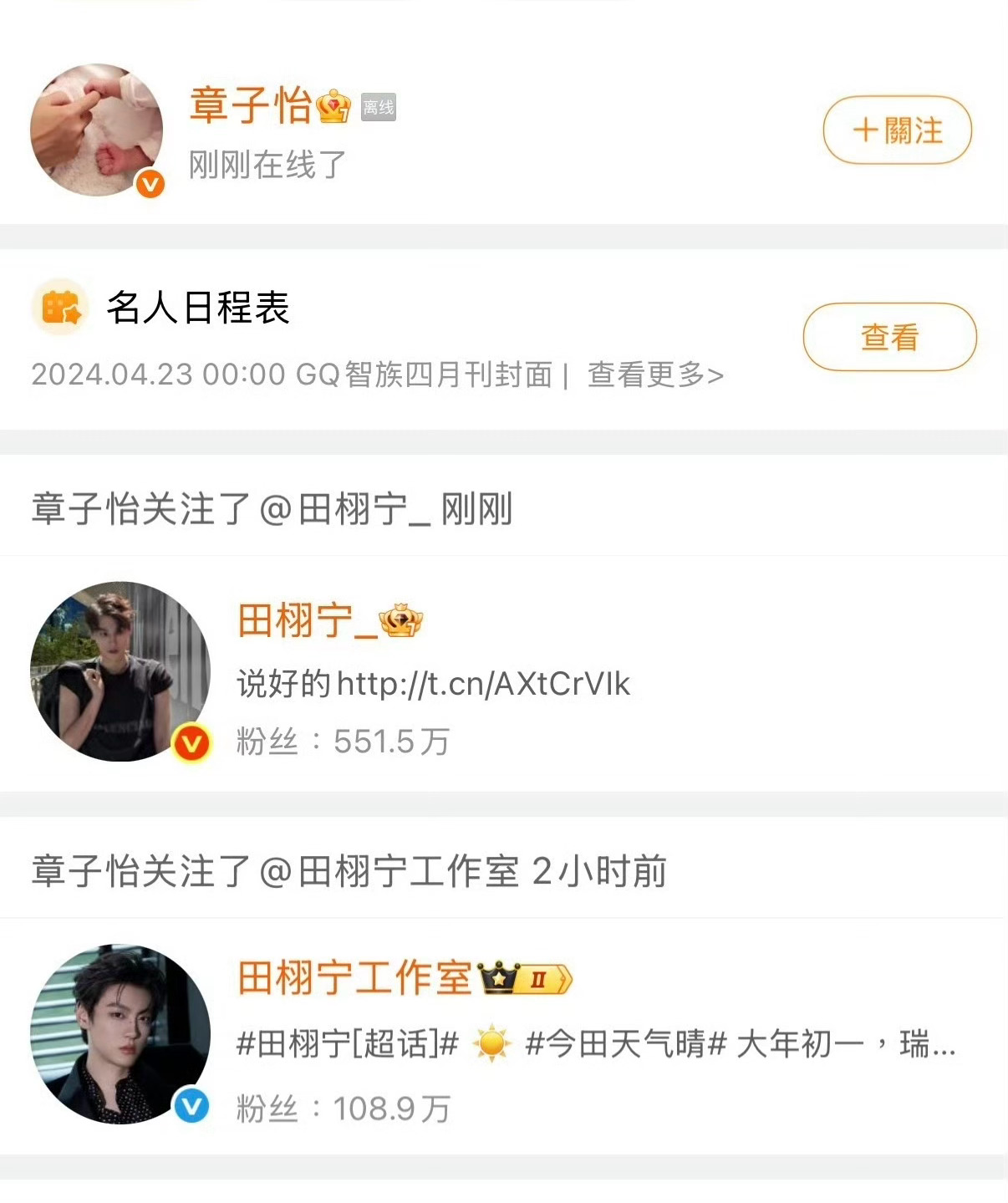 田栩宁章子怡要合作?田栩宁回关章子怡章子怡取关工作室换成田栩宁