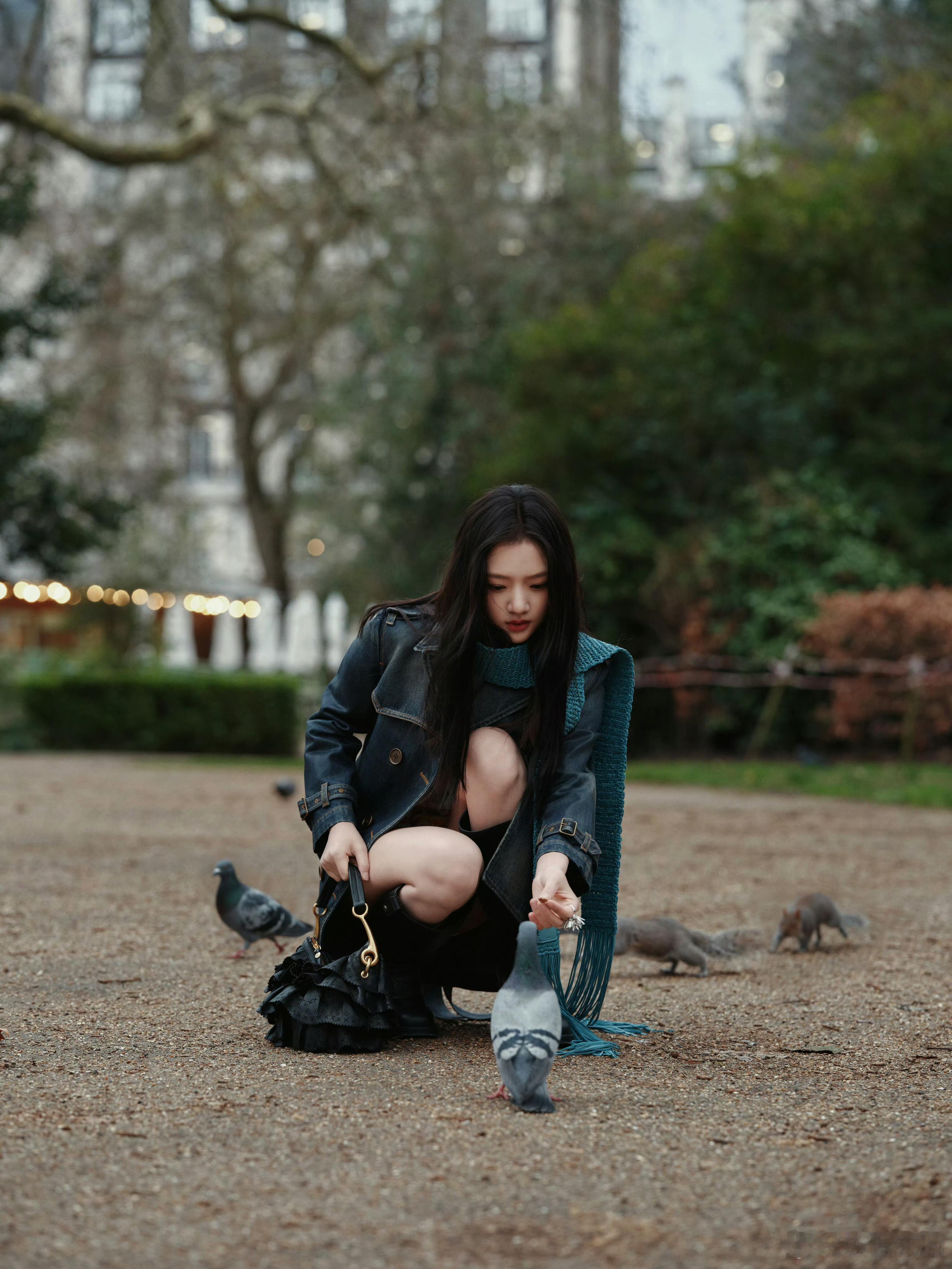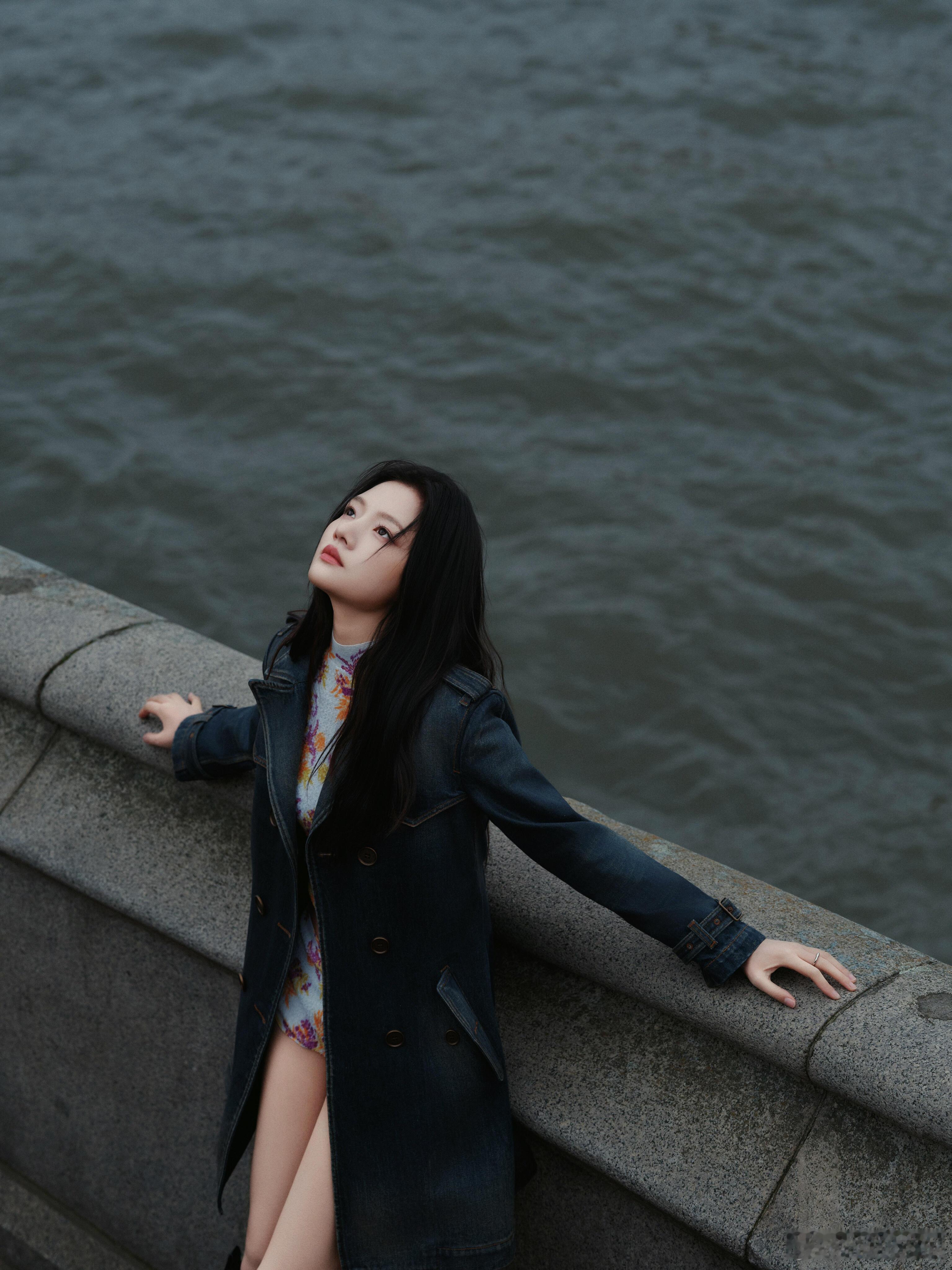 《紫衫粉巾的清韵》浅紫针织轻覆肩颈,如揉入暮色的柔雾,温而不滞。颈间粉巾似