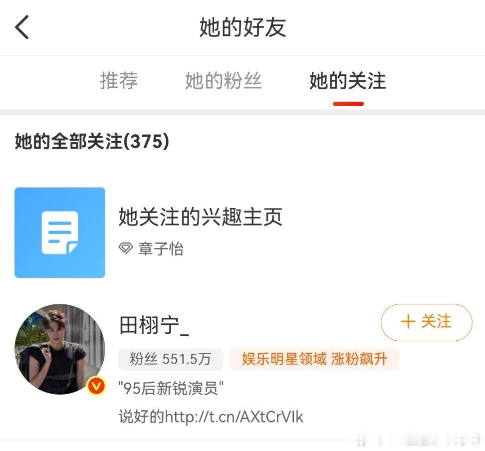 坏消息:已经取关工作室了好消息:直接关注田栩宁本人了 章子怡取关工作室换成田栩宁