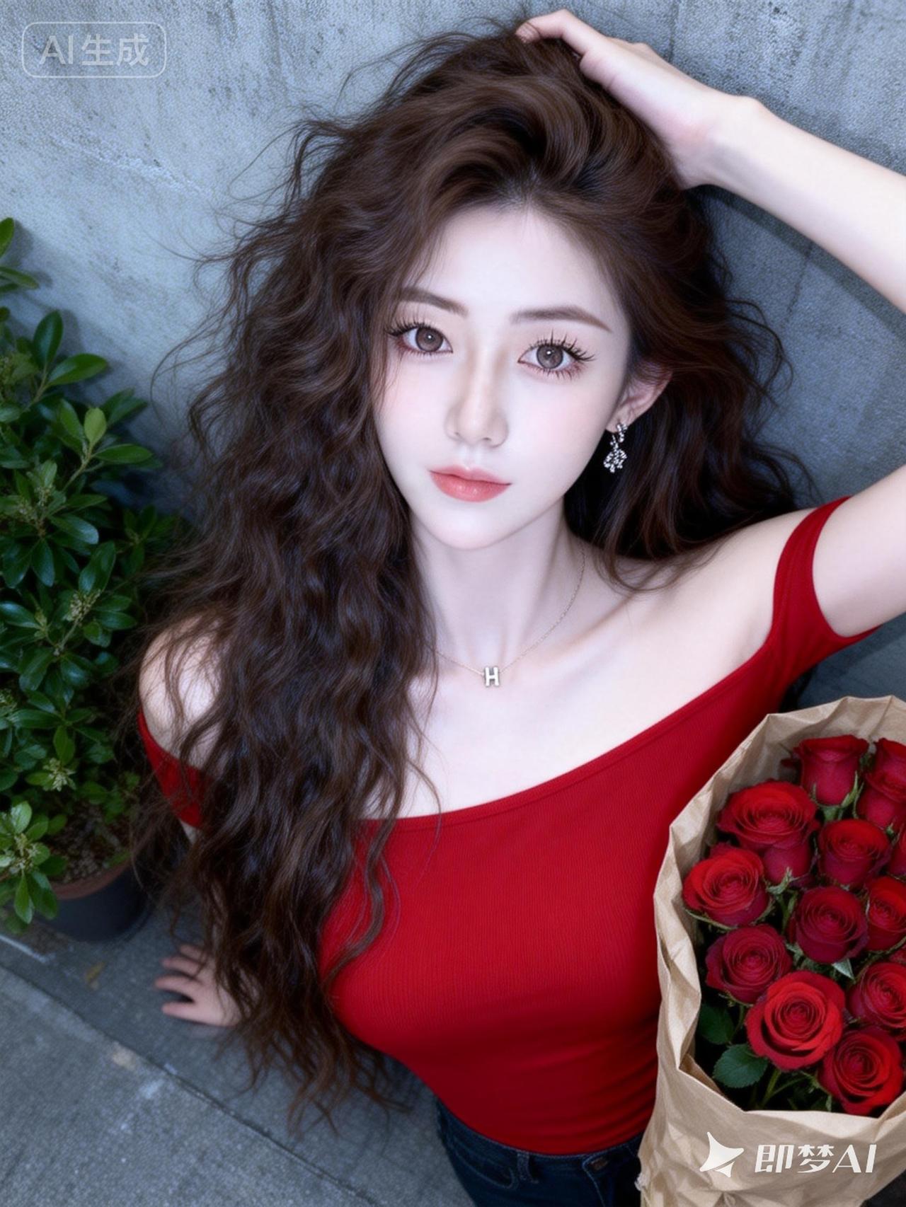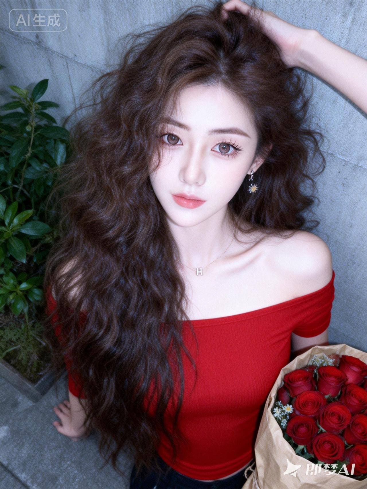 深情,网红妆,肌理真实,清透,咖啡,精致配饰,外翻超大卷长发及腰,头发外翻超大卷