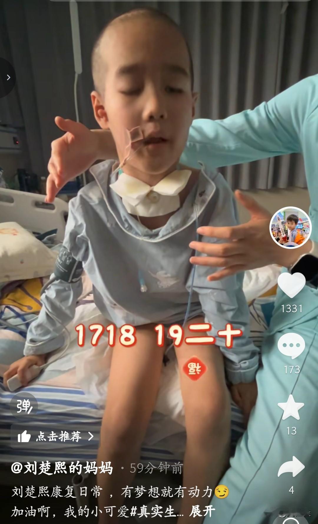 2月24日,刘楚熙挺直身子坐了差不多4分钟!进步真的太大了!刘楚熙,加油! 不过我有点疑问,这家医院的病号服就是这样的吗?像反穿衣一样,后背扣扣子?刘楚熙基本每天都躺着,后背的扣子肯定会硌得疼,孩子本来就太瘦了。 妈妈可以给刘楚熙穿前面扣扣子的衣服,需要时再套上护衣,不用的时候就脱掉。腿上也穿件薄薄的睡裤,孩子睡着也舒服。而且妈妈每天都在更新记录,等孩子完全好了看到,会害羞的。