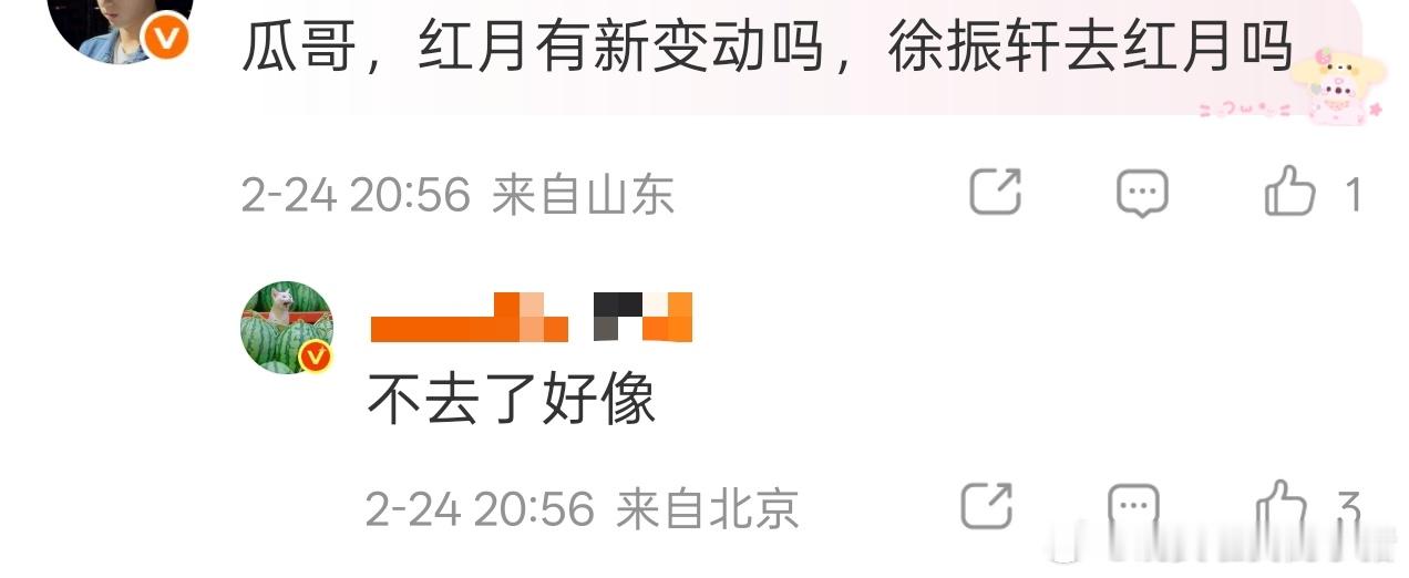 瓜主说徐振轩不去从红月开始了,不会直接进和程相的私家2吧