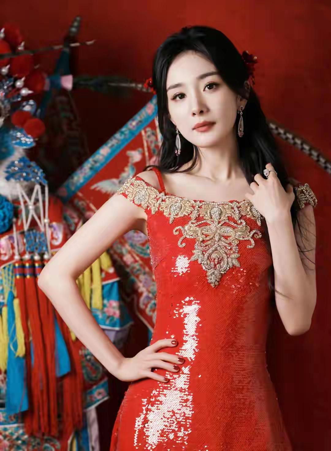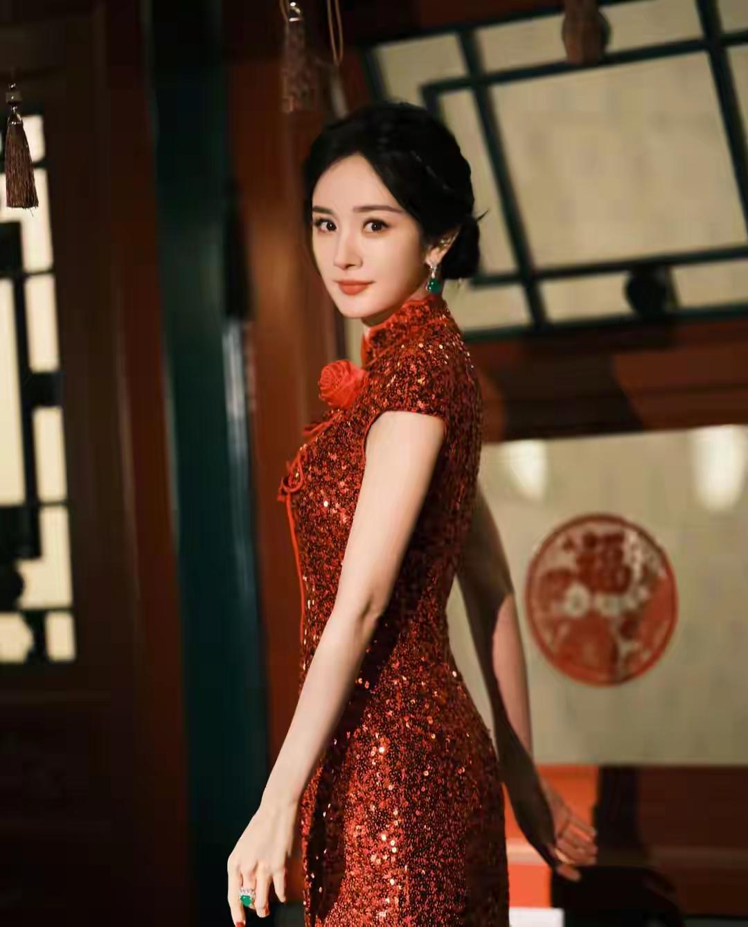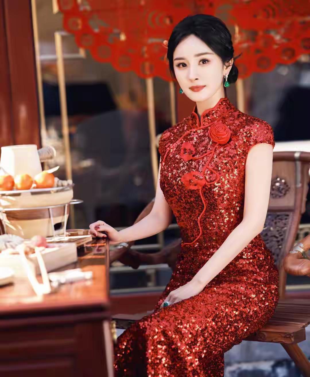 氛围感拉满是一种什么感觉?正红色的旗袍衬得她肤白胜雪,亮片在光影下流动,既热烈又高级。她的眼神明亮而坚定,红唇与红裙呼应,既有过年的喜庆感,又有一种“国泰民安”的大气从容,让人过目不忘。 她身着的红色亮片改良旗袍,既有传统立领、盘扣的雅致,又有亮片材质的现代感。这种设计让她既有东方女性的温婉端庄,又不失现代女性的独立与气场,完美诠释了“新中式”美学。