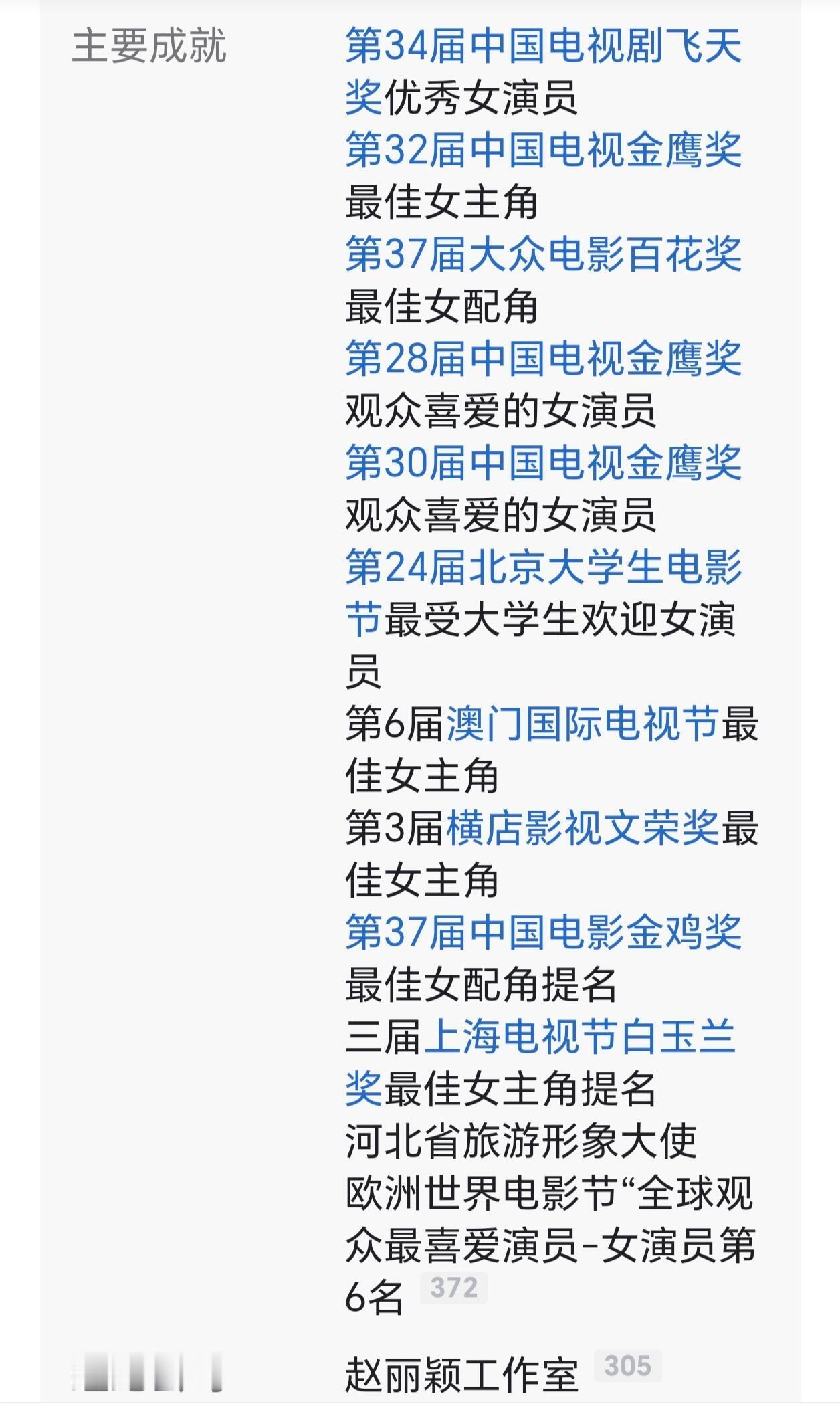 还是度娘给力,把赵丽颖欧洲电影节“全球观众最喜爱演员”加到获奖记录里了❗️
