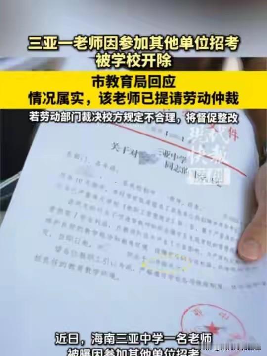 “三亚一位刚入职仅两个月的老师,因为参加其他单位的招考,竟然被所在学校开除了!”