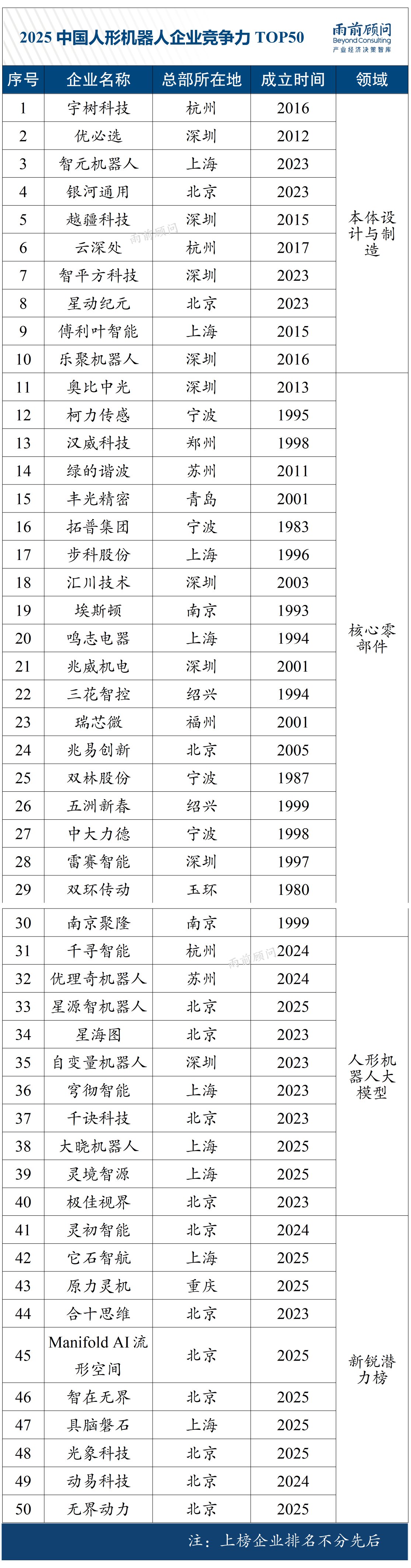 梳理榜单发现,入选企业主要集中在整机制造、核心零部件、人形机器人大模型三大赛道。