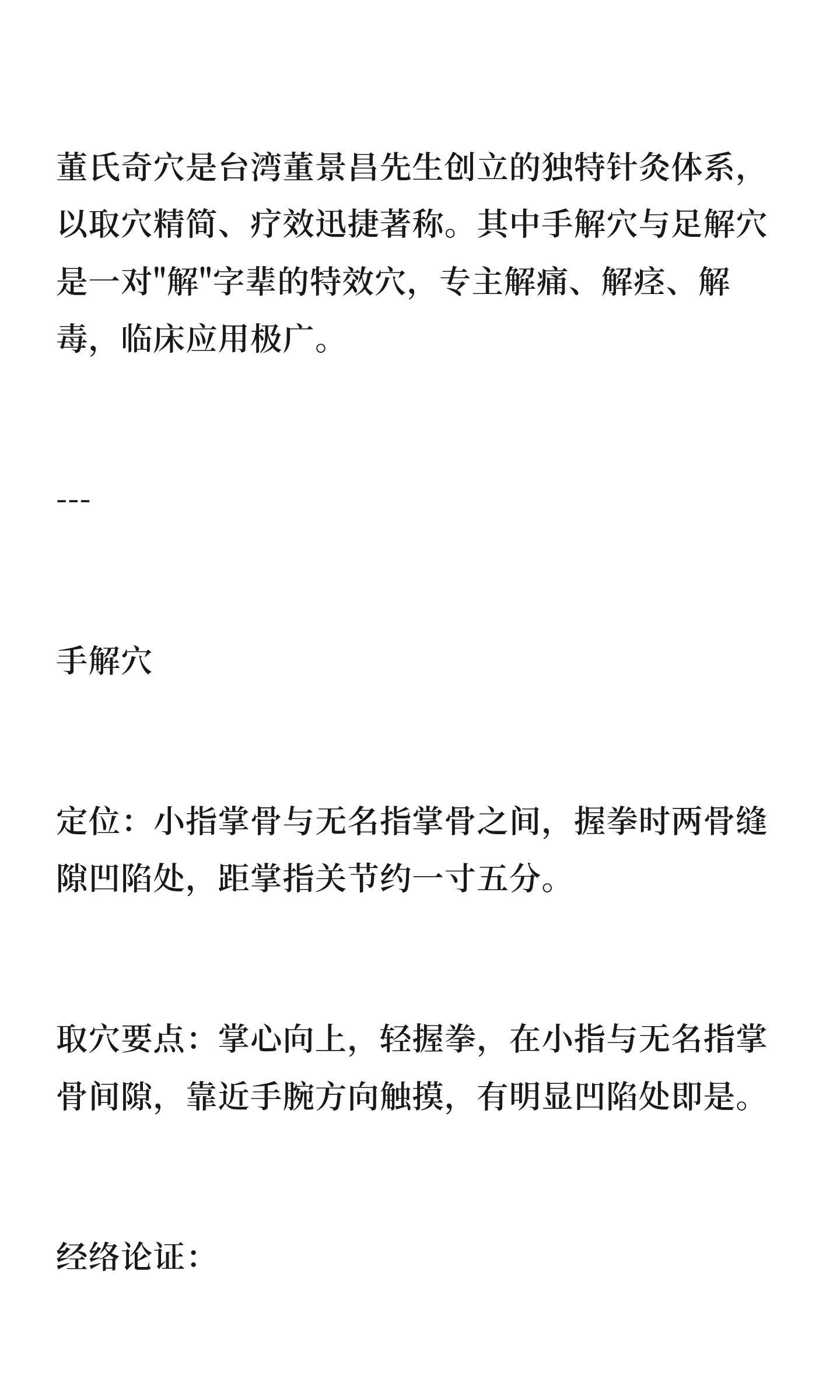 董氏奇穴:手解穴与足解穴,解痛解急的特