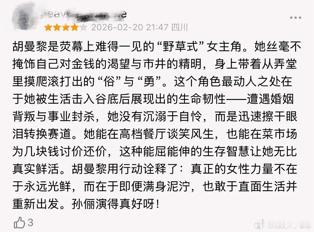 蛮好的人生孙俪演技真全网0差评了,豆瓣短评新增评论基本都在夸她的演技,红薯跟抖看