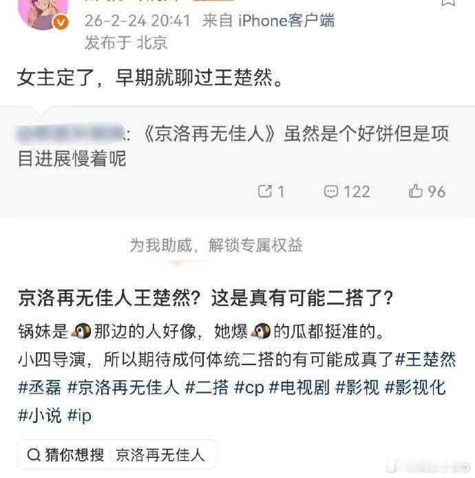 《京洛再无佳人》男主深度接触丞磊,女主目前还没定,有网友想让王楚然丞磊二搭