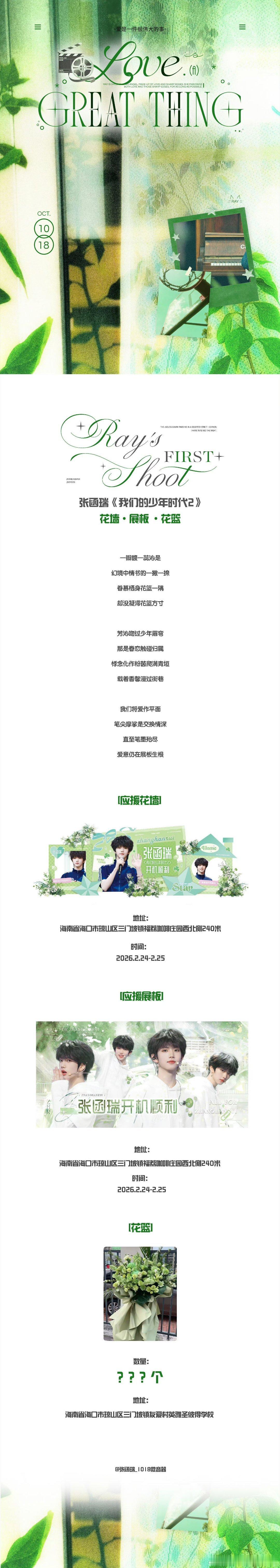 张函瑞《我们的少年时代2》开机应援九屏联动,这排面给的好足!我们的少年时代2