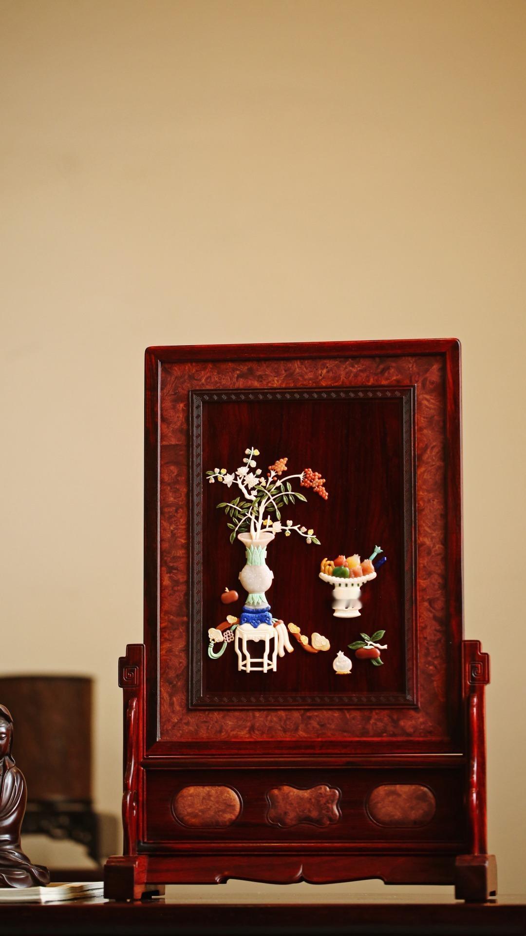 小叶紫檀×百宝嵌 | 清供图 插屏