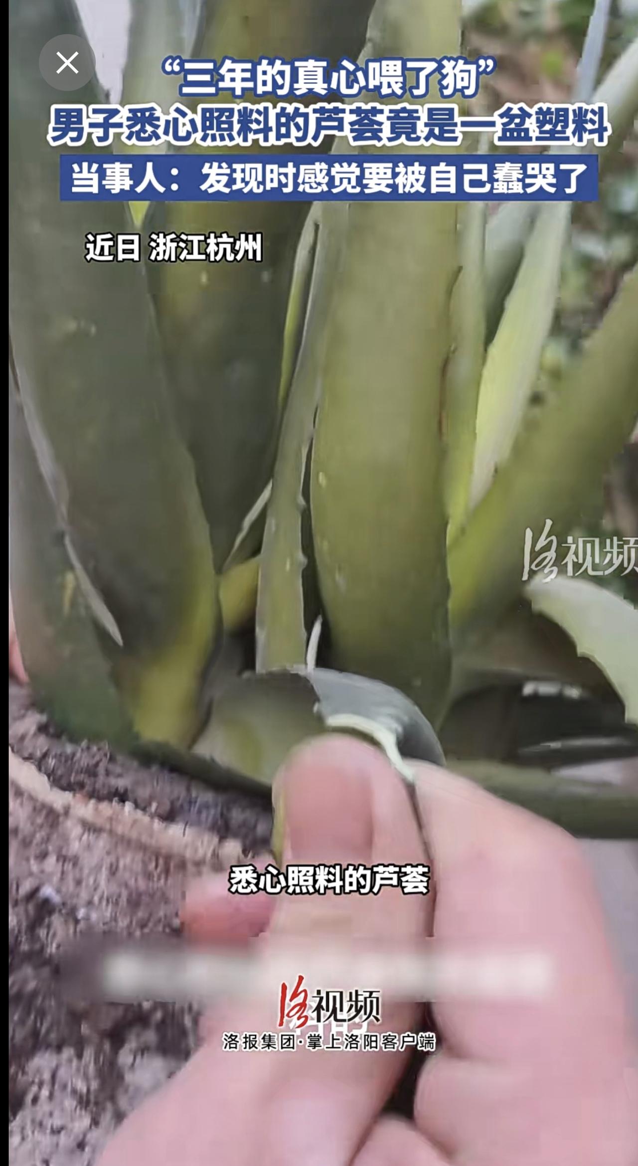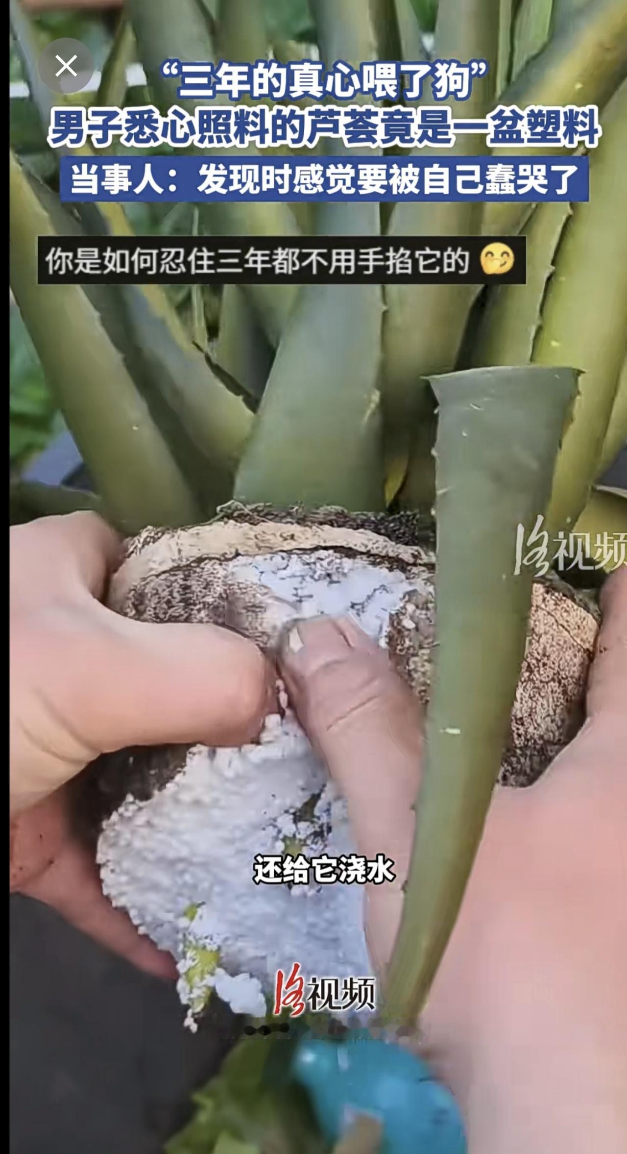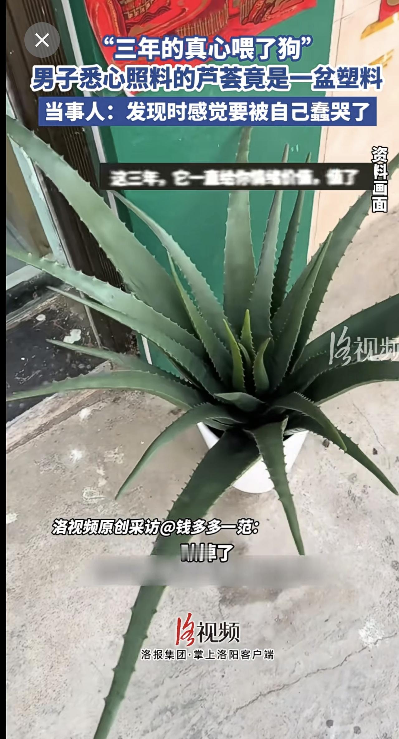 “三年的真心喂了狗”,男子悉心照料的芦荟竟是一盆塑料[捂脸]