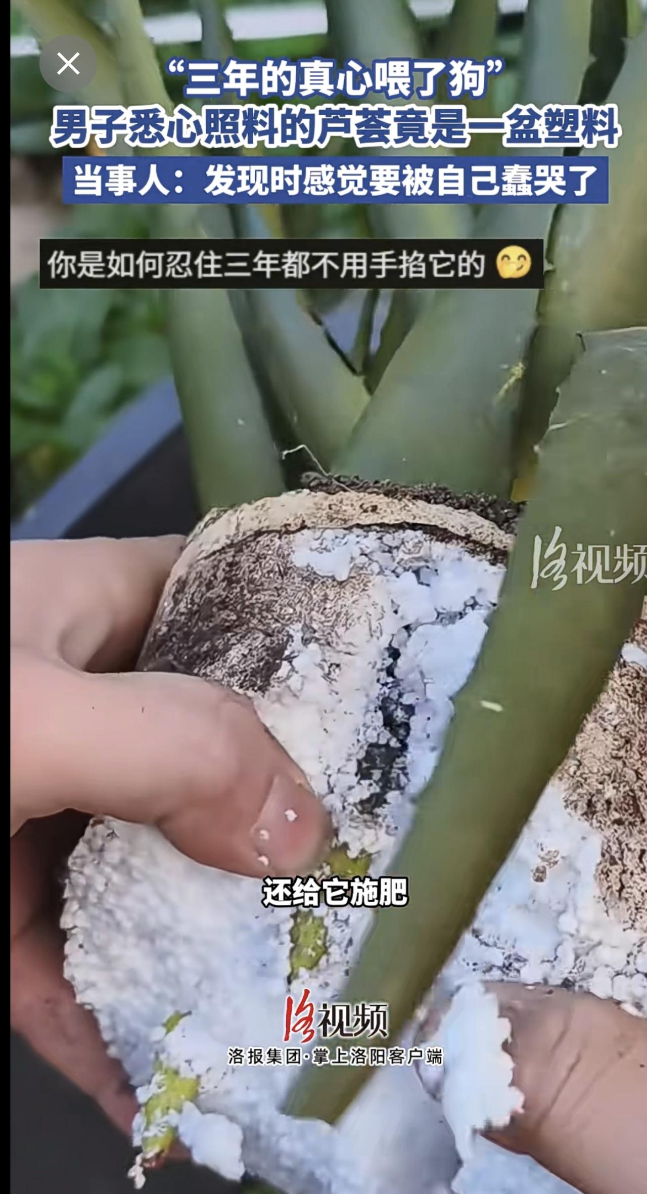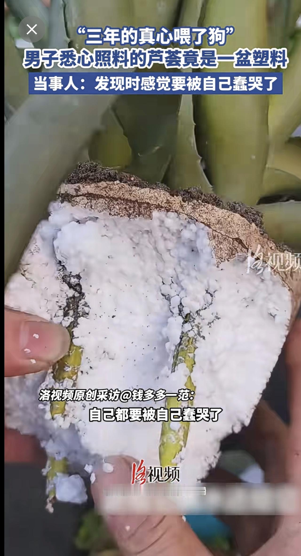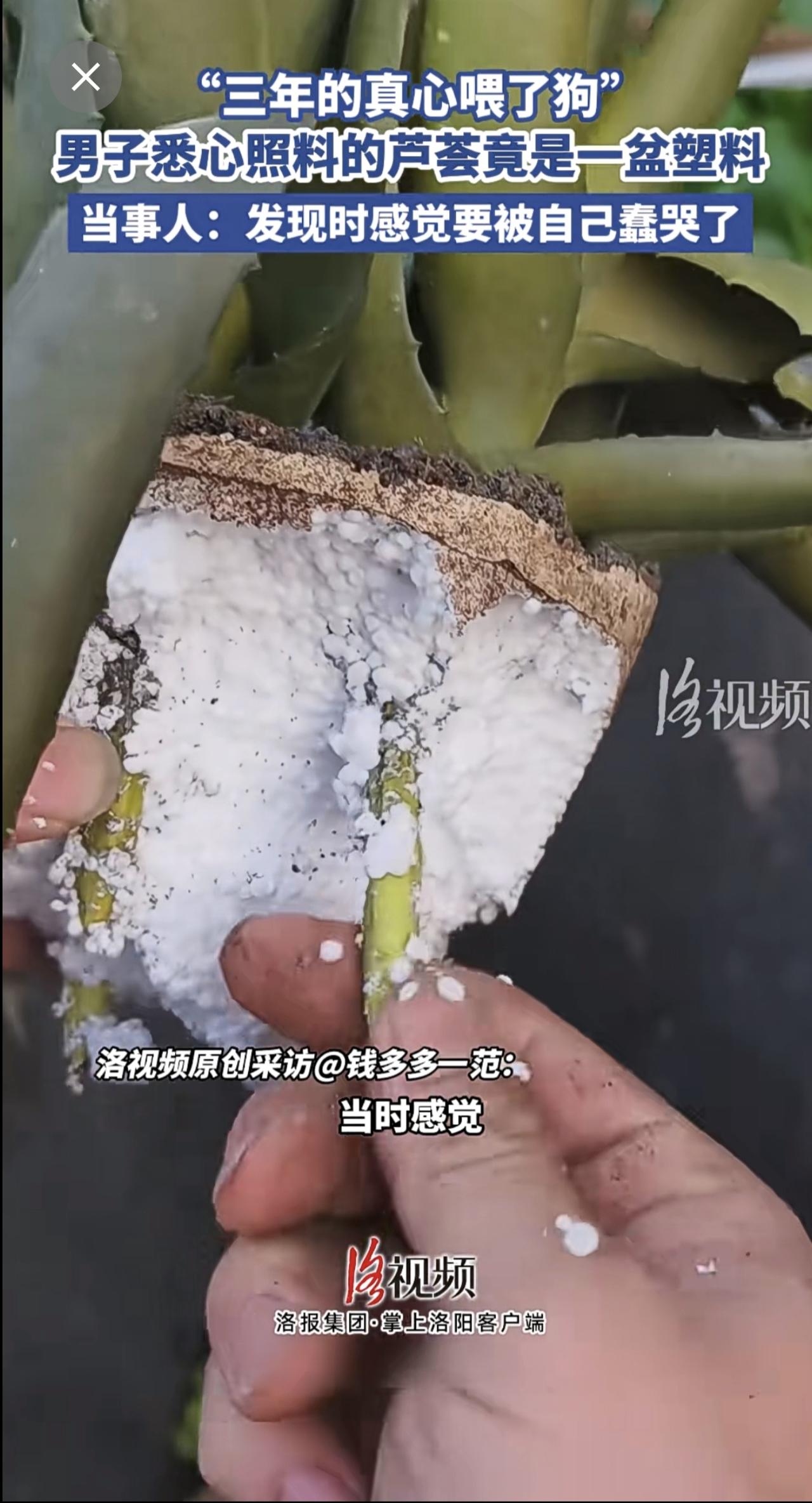 “三年的真心喂了狗”,男子悉心照料的芦荟竟是一盆塑料[捂脸]