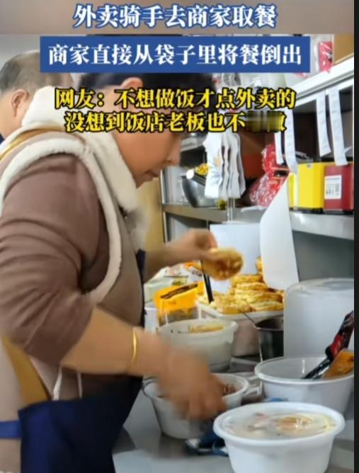 大过年,本来偷懒不想做饭点外卖,没想到商家也不想做饭。 只见商家直接从袋子里将