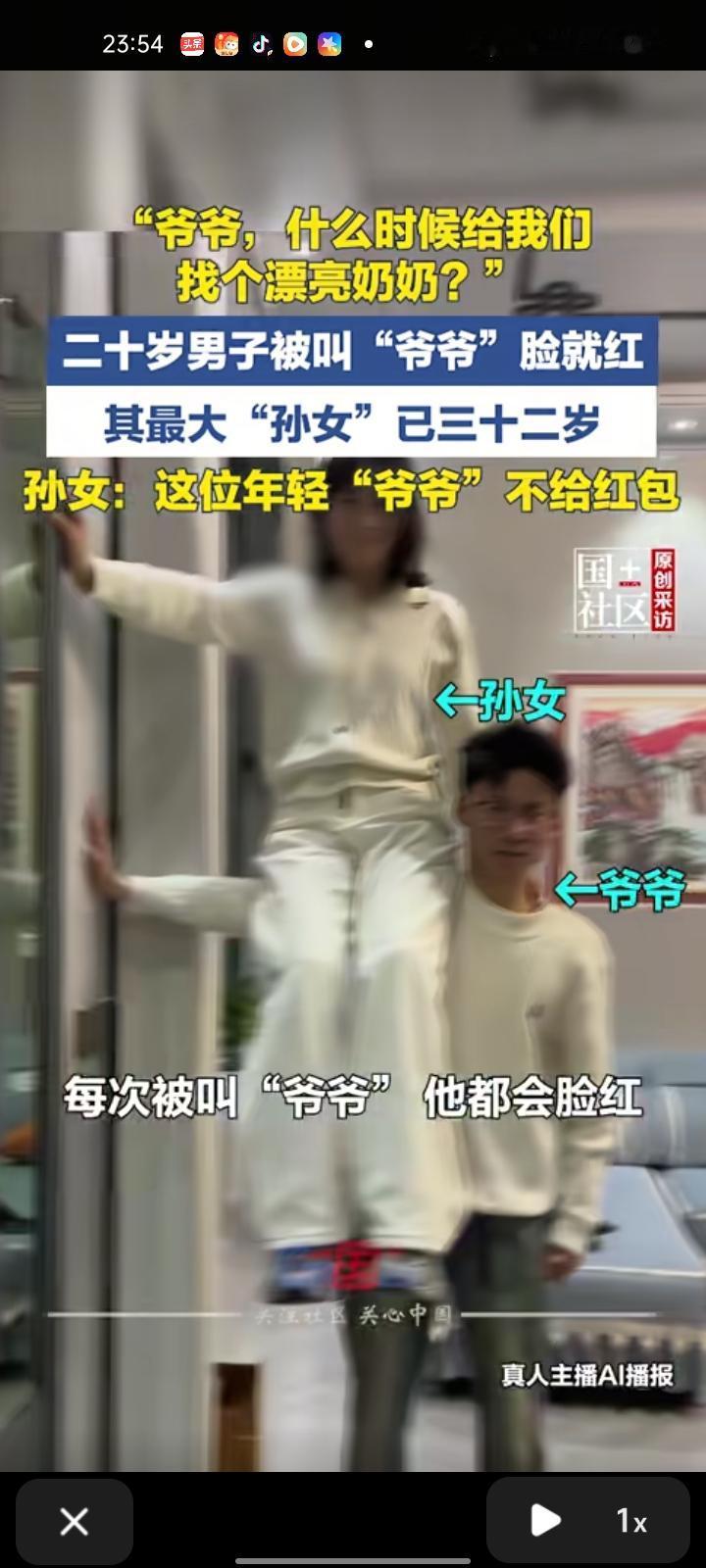 2月18日,河南新乡。二十岁男子因辈分高,被家族年轻人叫“爷爷”,其中年龄最大的“孙女”已有32岁。 孙女表示,每次被叫“爷爷”他都会脸红,家人曾建议改造“哥哥”,但他表示“叫哥哥就不给红包”。如今大家只是在逢年过节或开玩笑才这样称呼他,平时关系融洽。