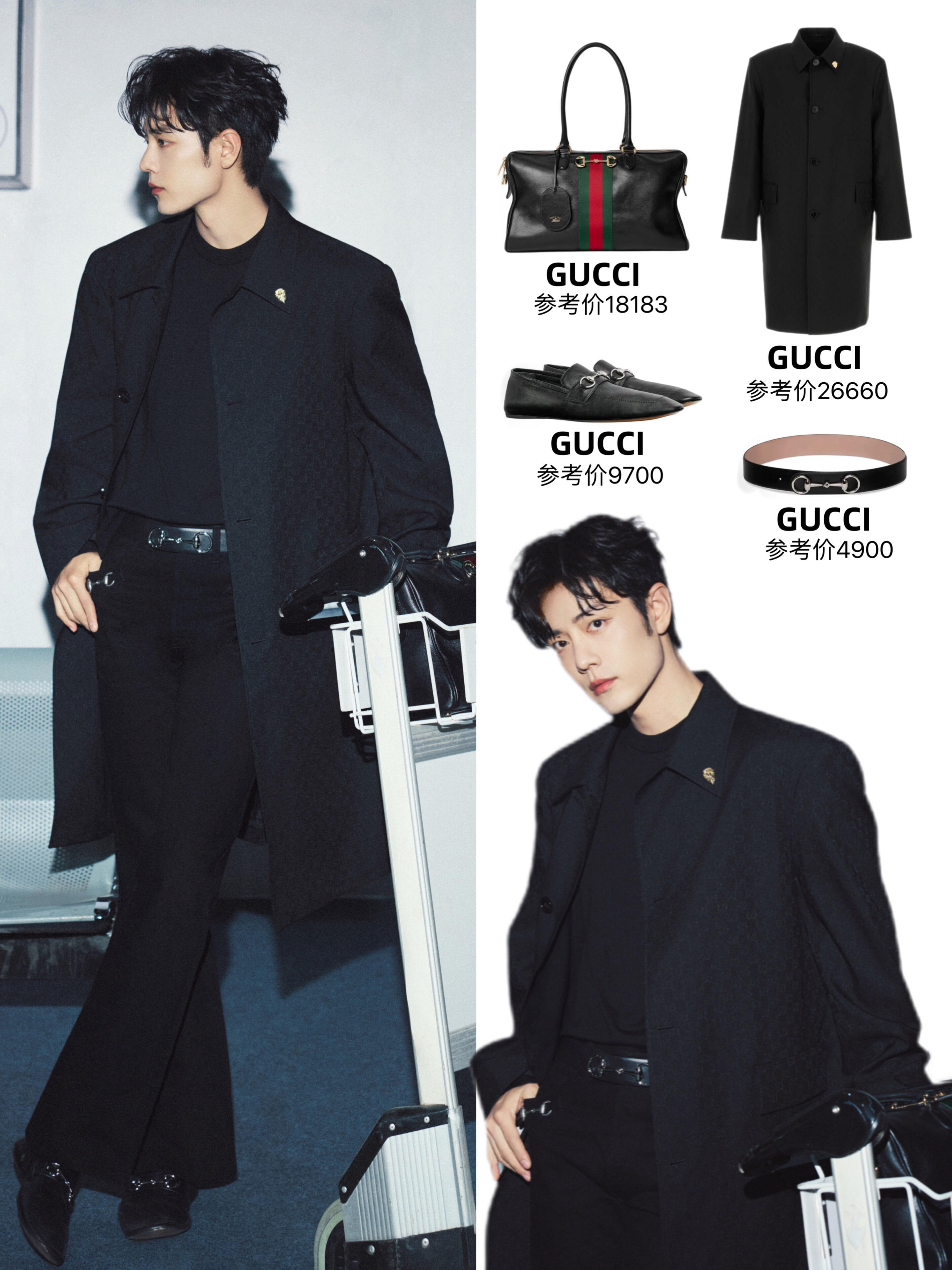 肖战的鼻间痣好像小狐狸同款合集,怎么会有人把All Black穿的这么好看啊!马衔扣腰带,GG暗纹提花大衣,马衔扣乐福鞋鞋,波士顿包,金色胸针点缀