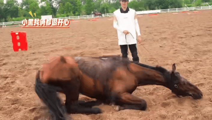 董思成让马打滚像AI的 看完董思成训马的场面,彻底被《镖人》的拍摄细节折服。他和马的沟通特别顺畅,指令清晰,马儿反应及时,说躺就躺说滚就滚,像被AI设定好一样。一人一马高度默契。