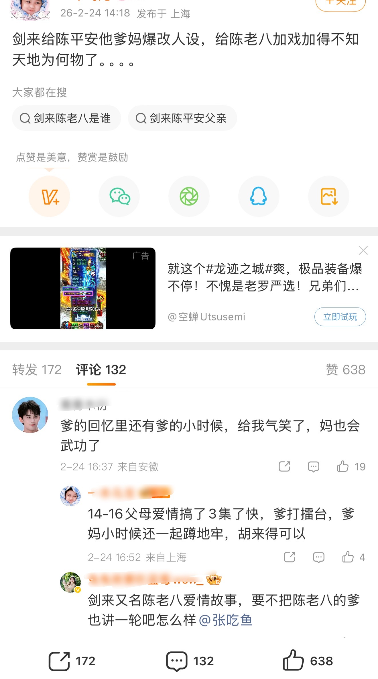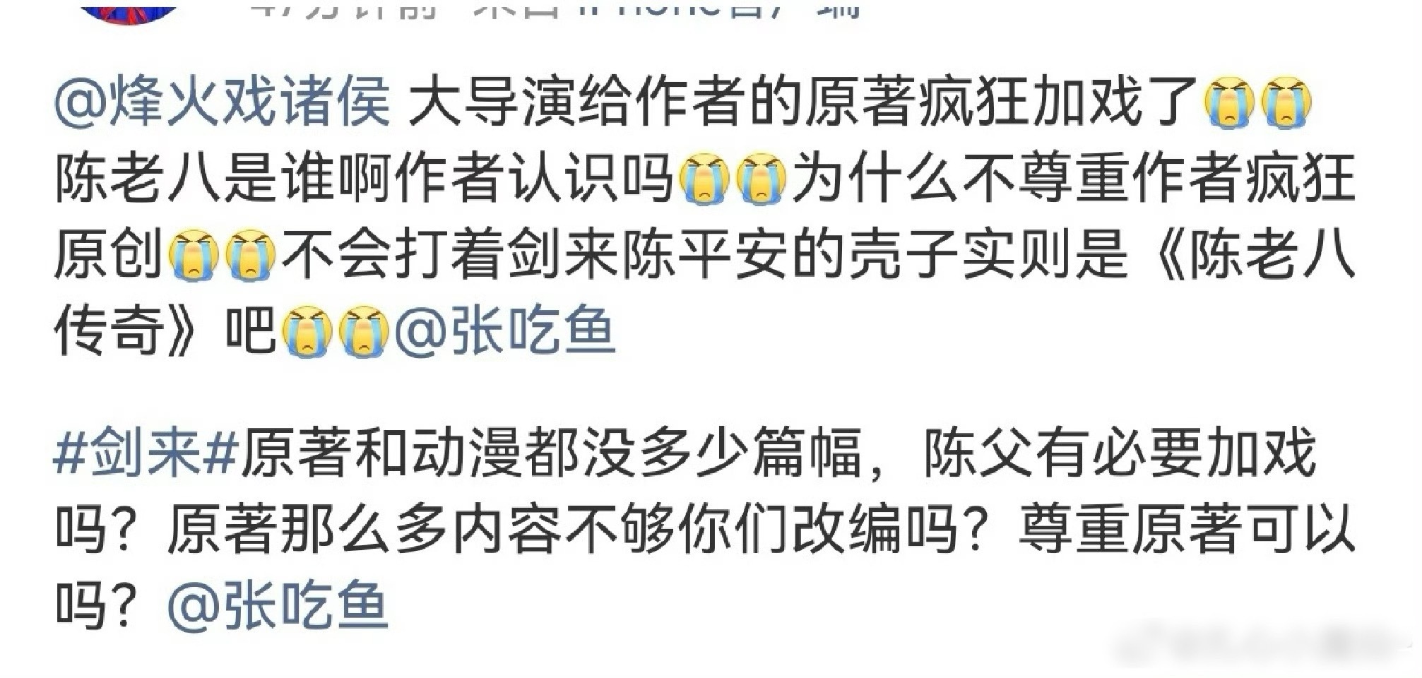 又有剧组加戏了,《剑来》特别过分,给一个开机名单上没有的角色疯狂加戏,这种大IP也这么搞,你安心地去吧好吧。 剑来 魔改