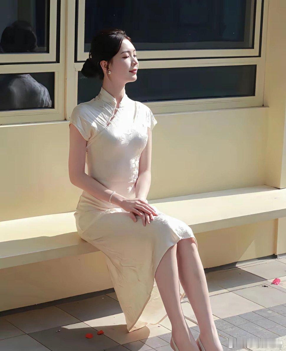 旗袍是最能勾勒东方女性韵味的服饰,穿搭讲究简约雅致、恰到好处。蛋青色这类清雅色系