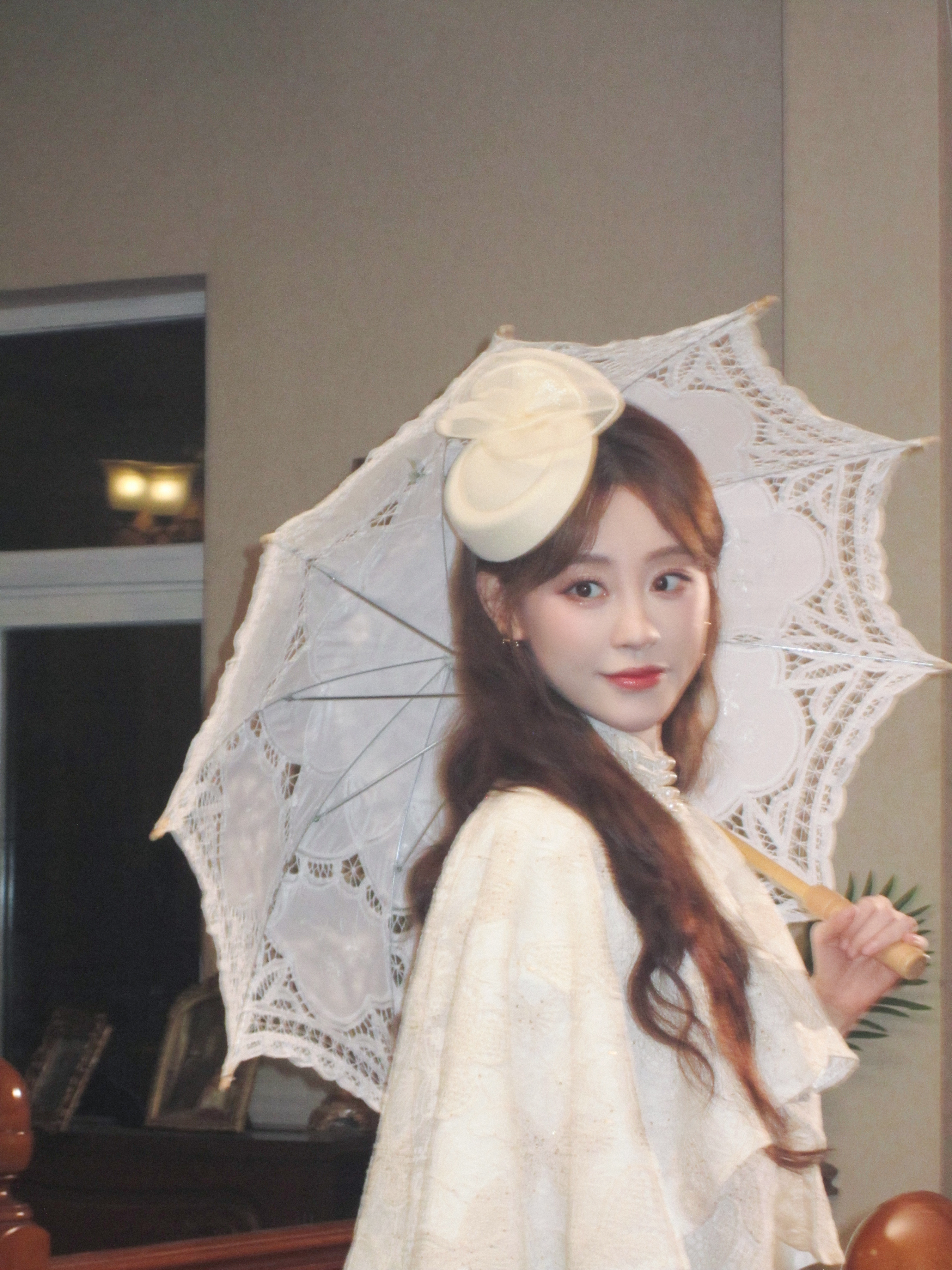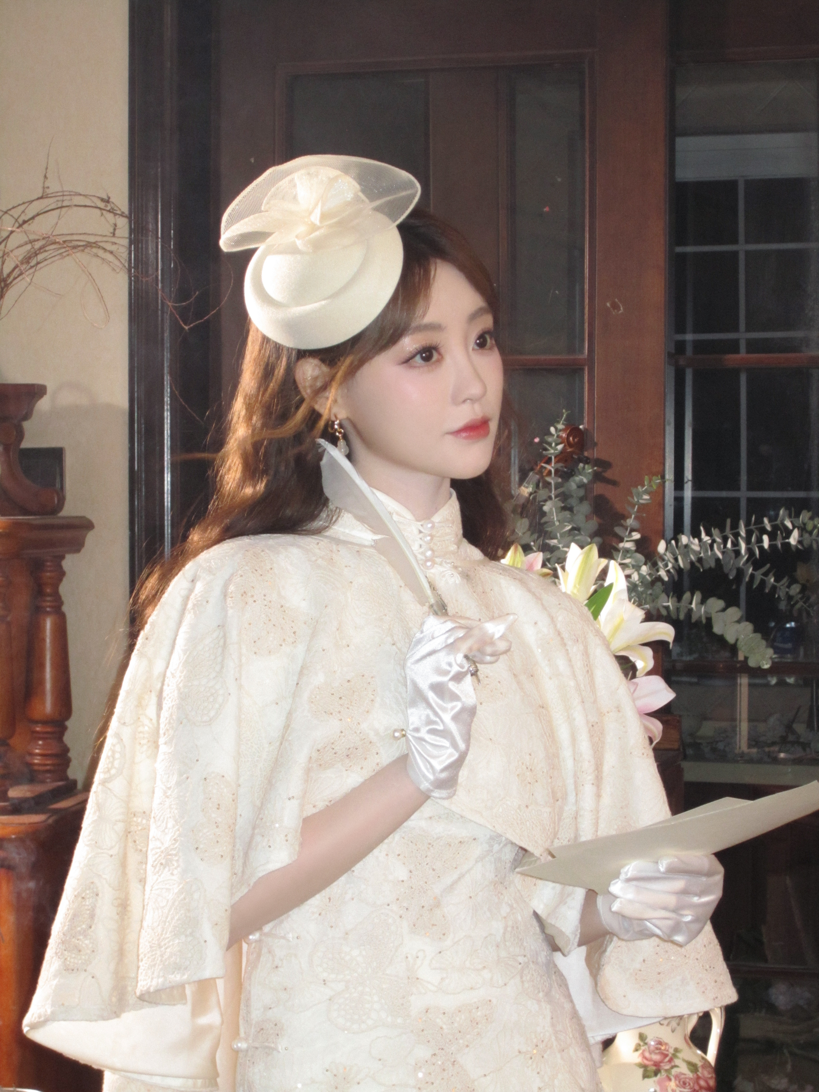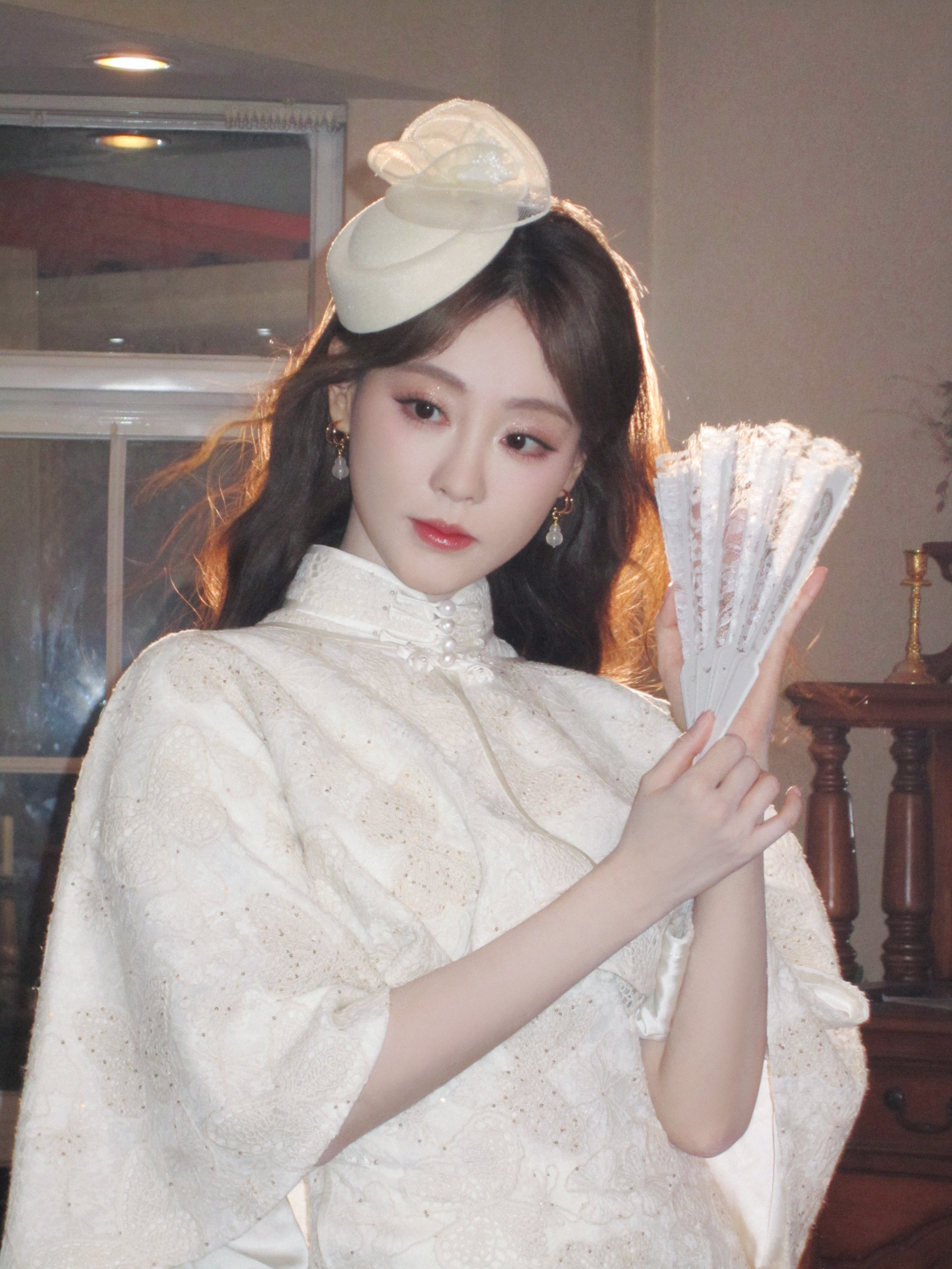 祝绪丹麻花辫白色长裙写真