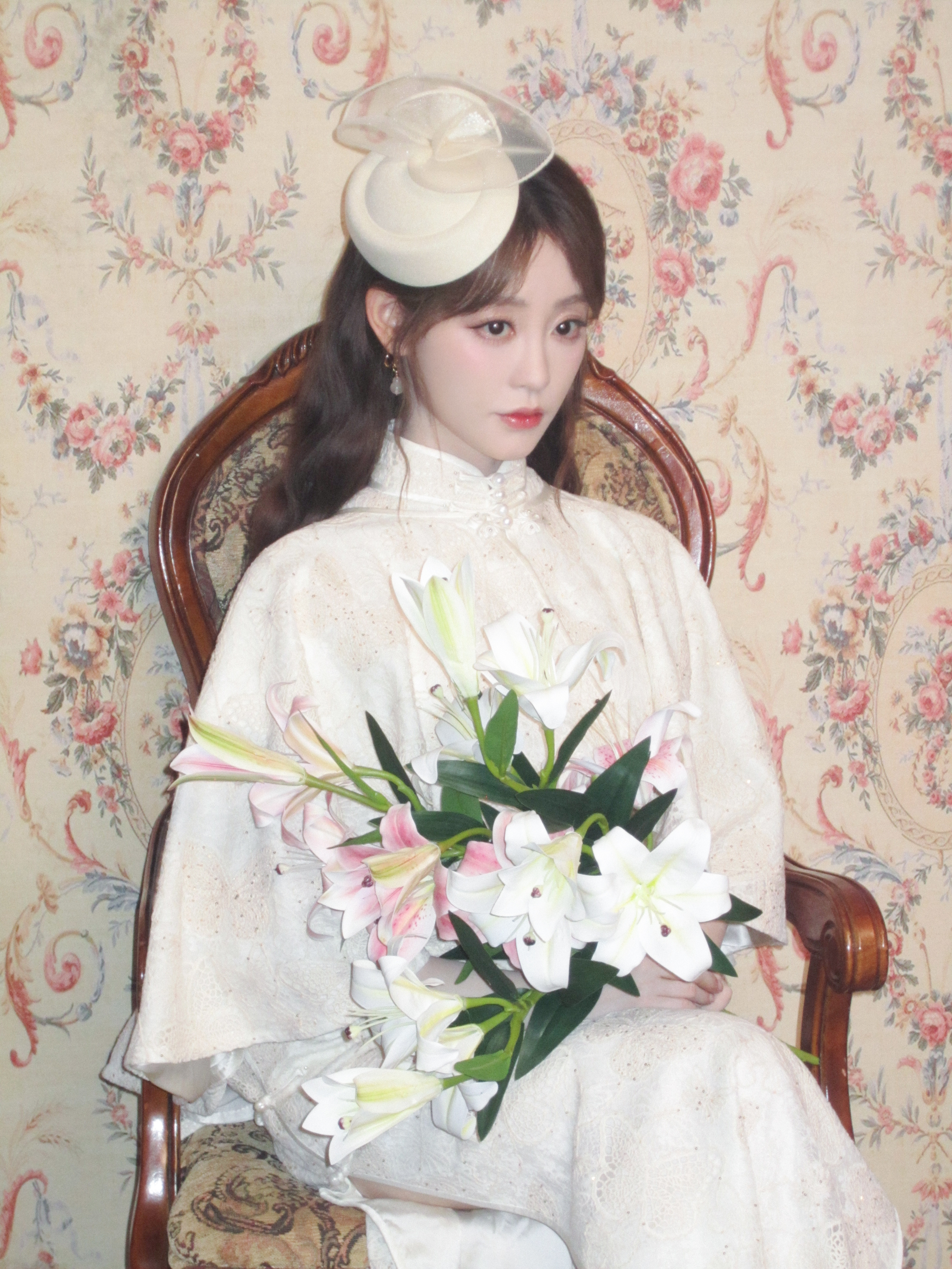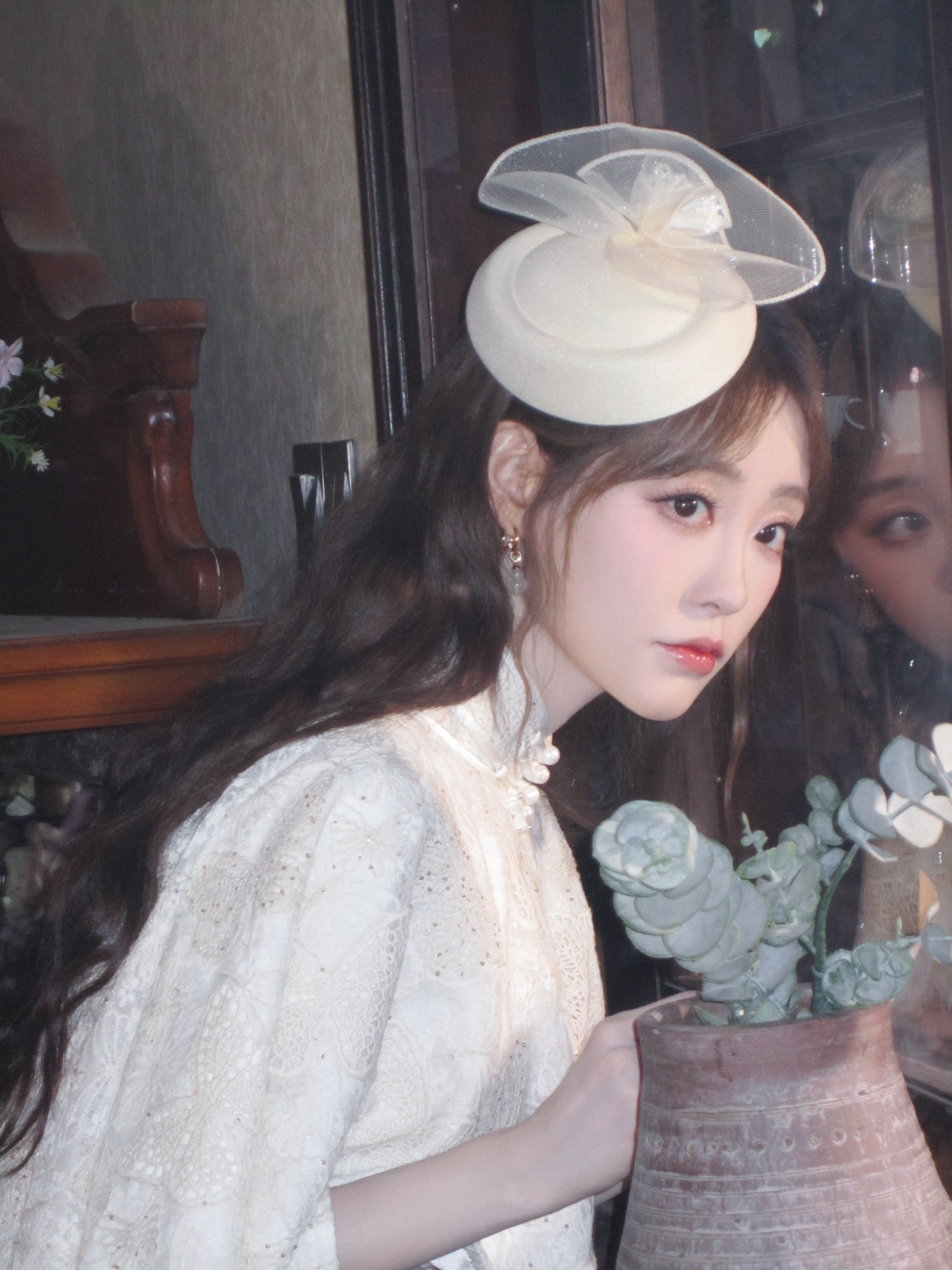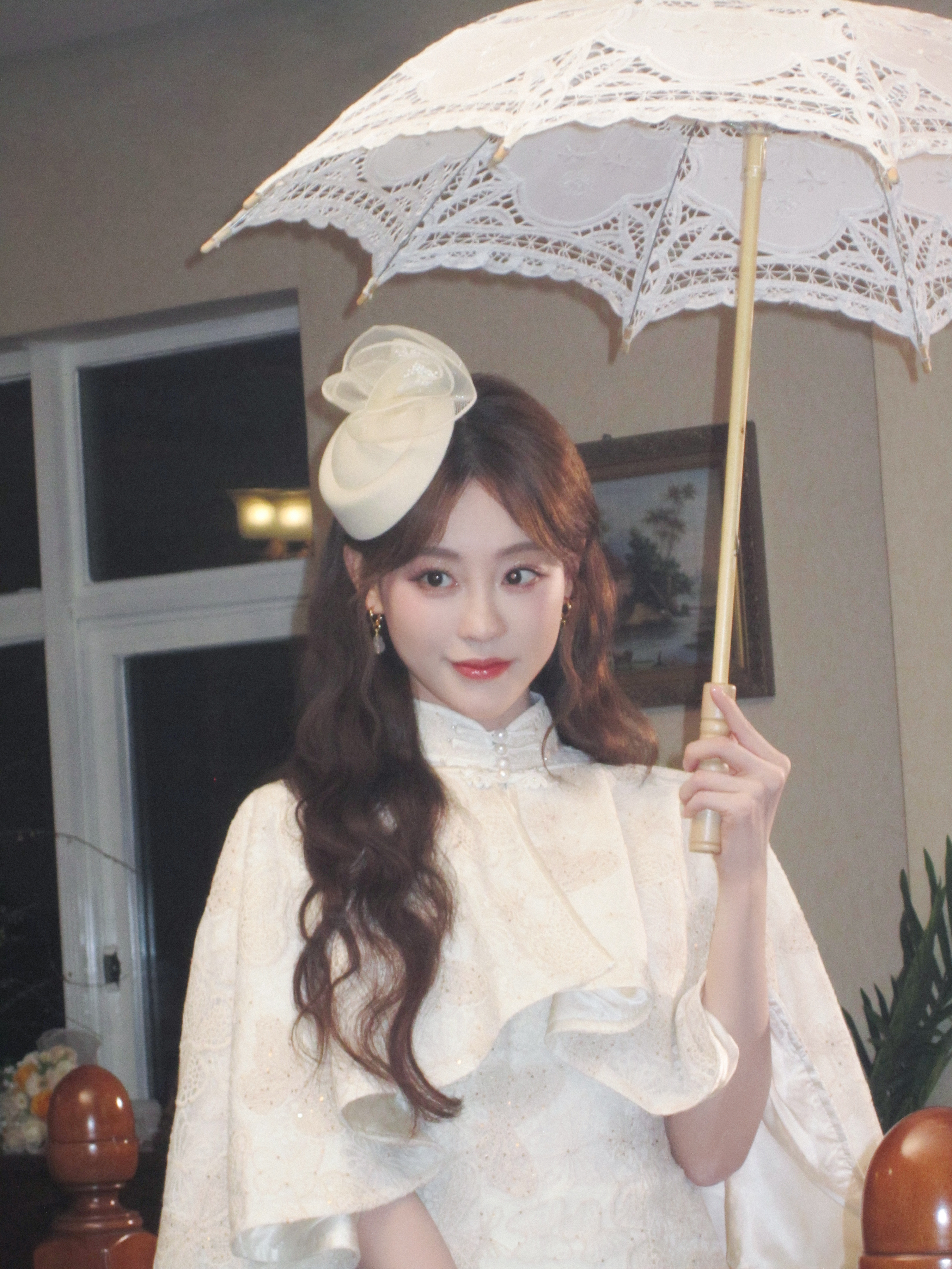 祝绪丹麻花辫白色长裙写真