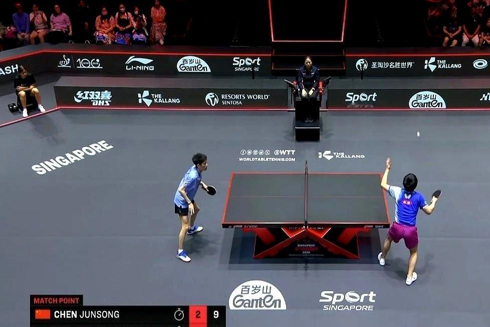 就差3分!国乒05后小将把张本智和逼入绝境,手握8-5领先,突然断电被一波带走。 你都不知道场上多窒息。小将陈俊菘用怪异的生胶打法,把张本的吼叫都快打没了。拿到赛点,又在决胜局8比5领先,眼看就要演去年双杀的剧本。 可就在这时,他手软了。接发球直接冒高,进攻板板犹豫,想赢怕输的念头一上来,整个人动作都僵了。张本一看你送机会,搏杀球一板比一板狠,连追5分直接反超。 这场球输的不是技术,而是心魔;这堂课交的不是学费,而是未来冠军的定金。小伙子,昂起头来!
