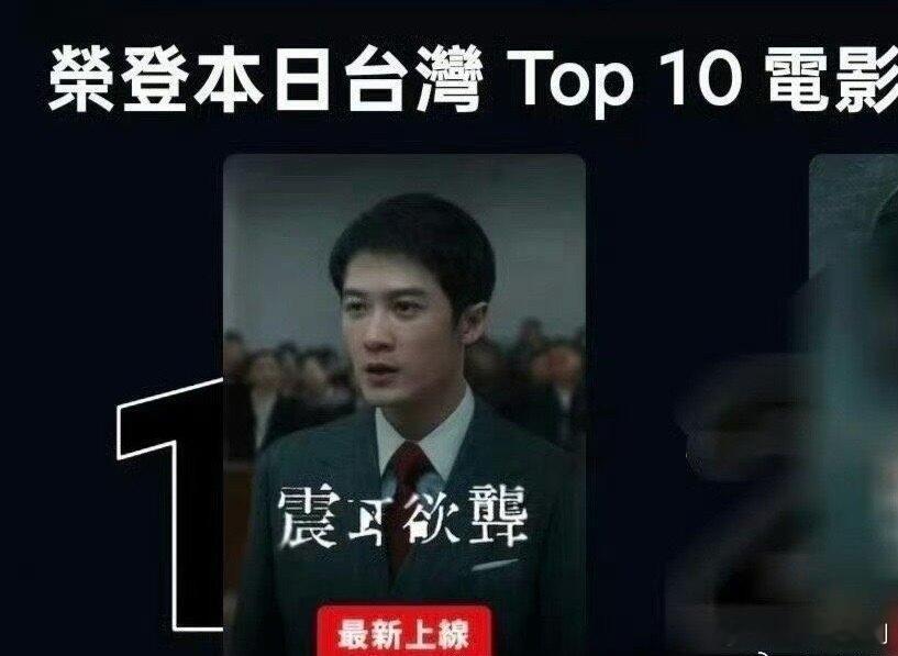 檀健次《震耳欲聋》网飞上线后拿下台湾电影热播榜第一,香港第二。