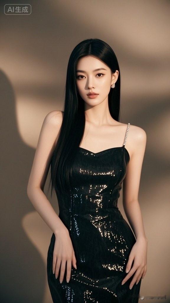 冷艳黑丝绒礼服,优雅气质女神💃✨