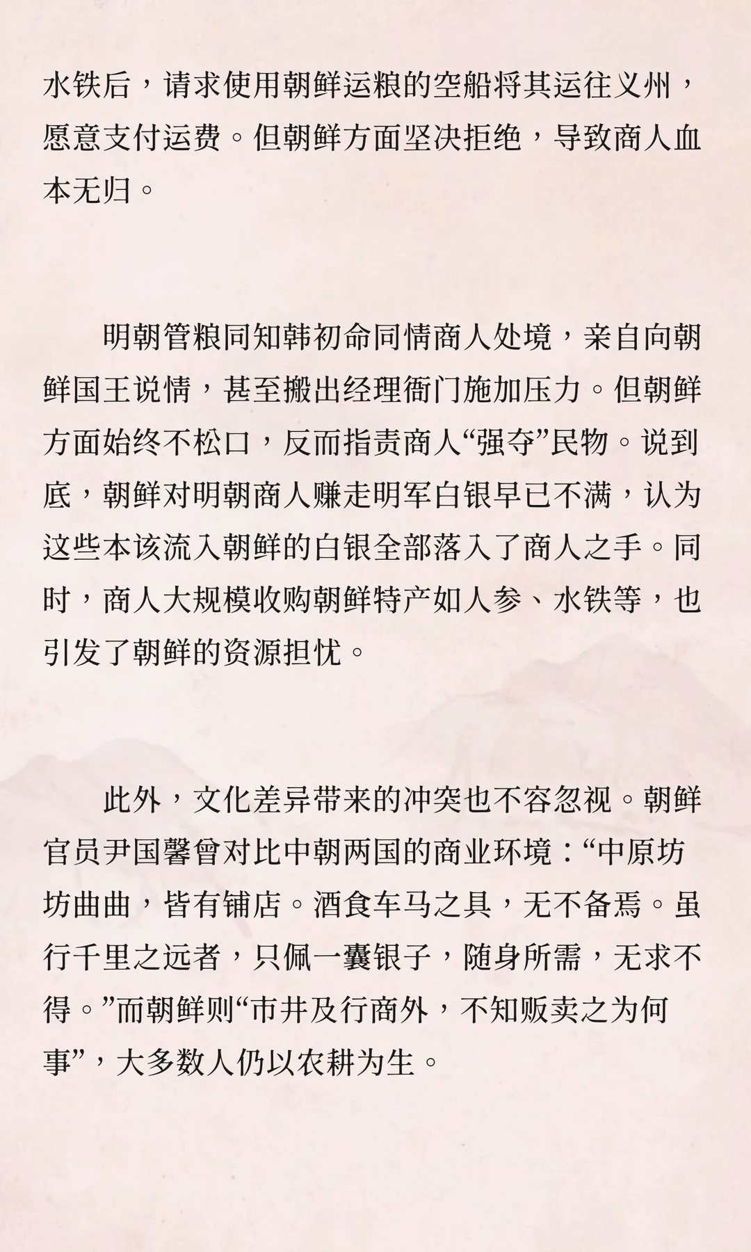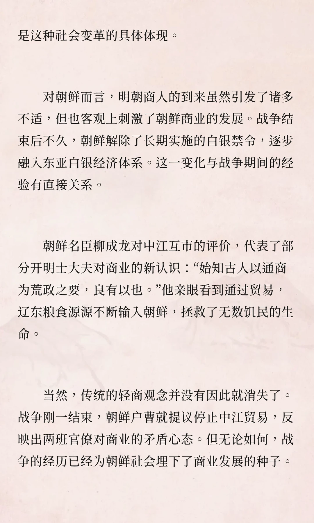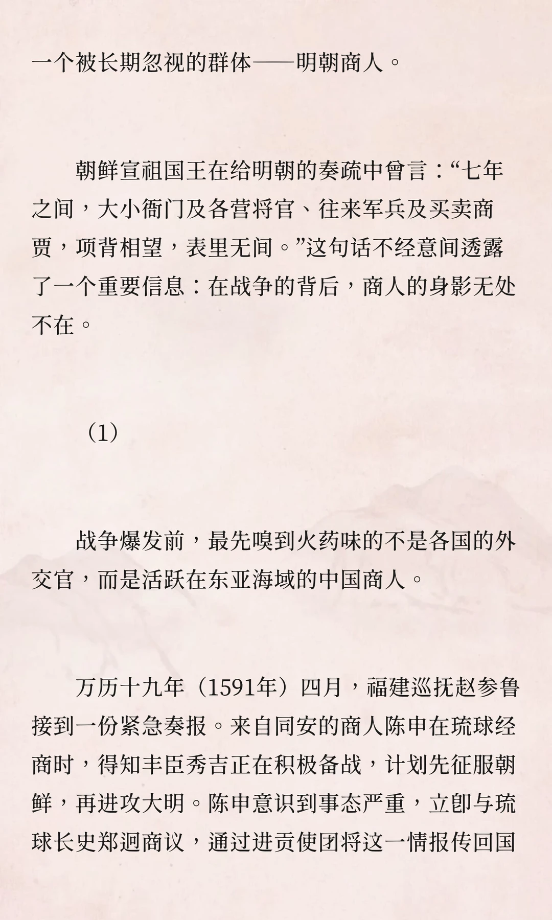 明朝商人在万历朝鲜战争中发挥了关键作用,通过情报传递、物资补给和后勤保障,为明朝赢得战争提供了重要支持。商人的活跃不仅反映了明代商业力量的崛起,还促进了朝鲜商业的发展,改变了两国的经济格局。