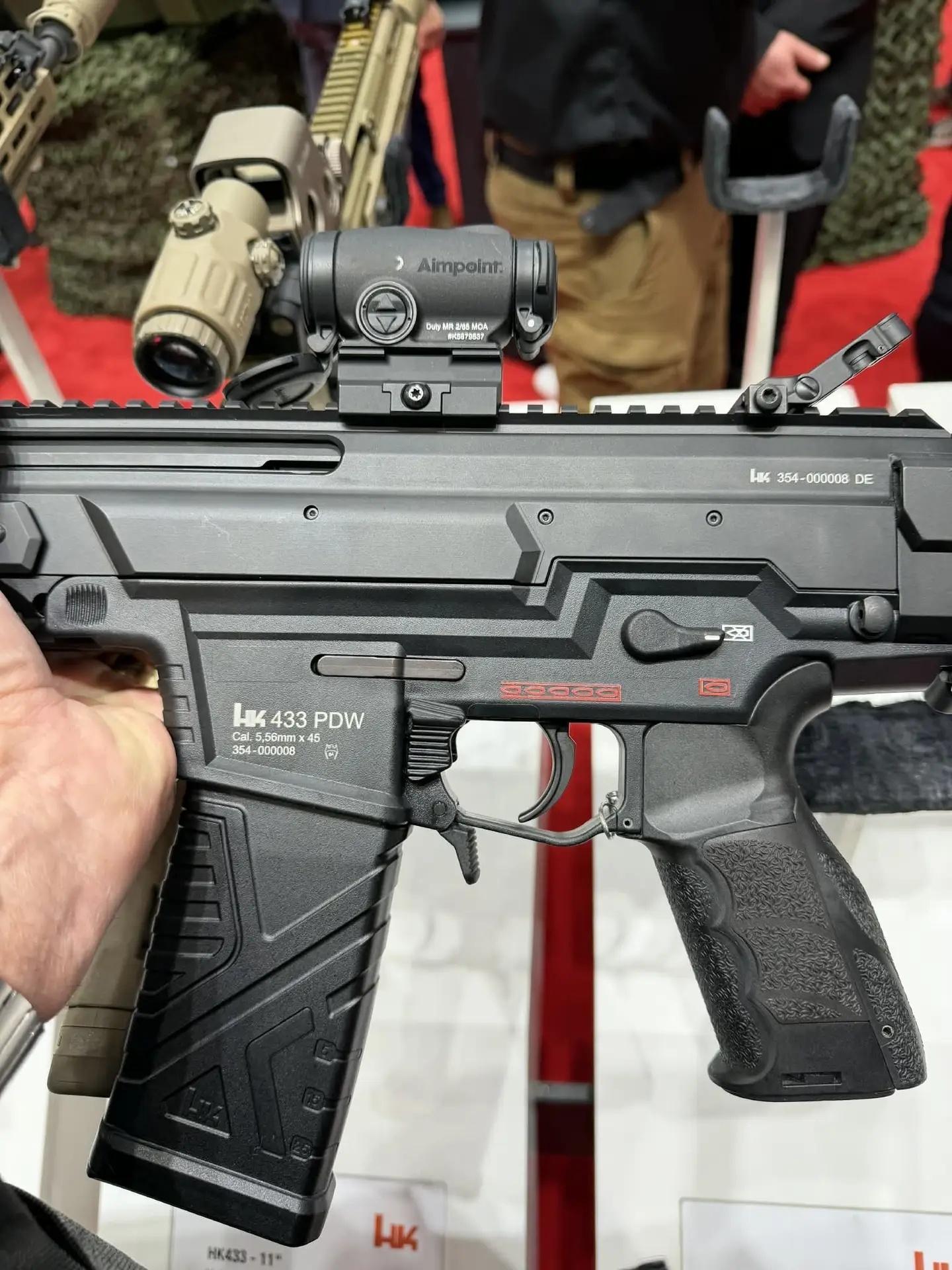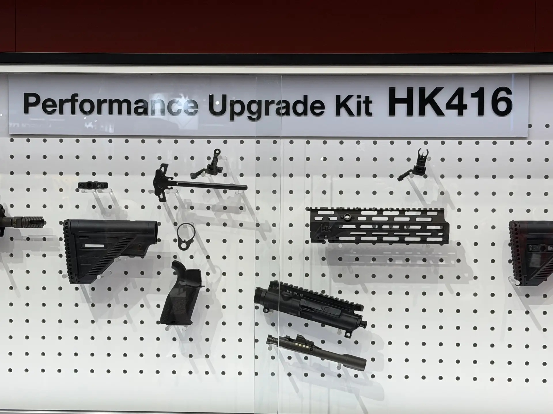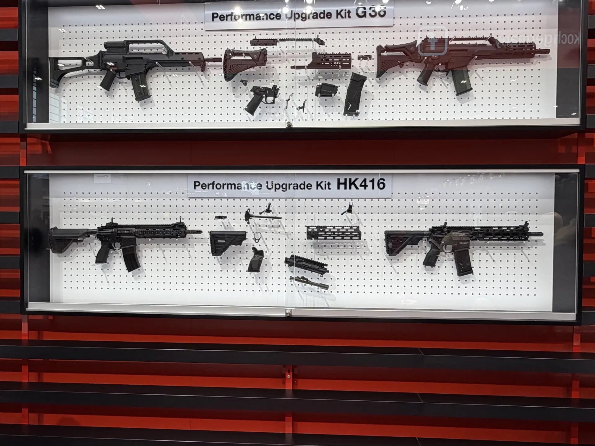 Enforce Tac 2026展会上的H&K展位,展出了H&K官方的G36和HK416升级套件烽火问鼎计划