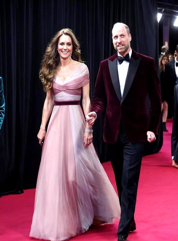 大病初愈就走红毯,身上穿的还是7年前的旧裙子。 粉色纱裙衬得她脸色发白,全程紧紧挽着威廉。镜头拉近,笑容里全是疲惫,眼神再没了过去的光。 要知道,这三年她经历了腹部手术,癌症化疗,王室内部也是一地鸡毛。安德鲁王子刚被抓,全靠他们夫妻俩出来撑场面。 王妃的职责,或许就是穿着漂亮的裙子,假装一切都很好。