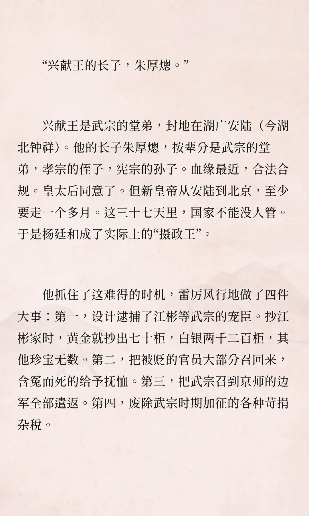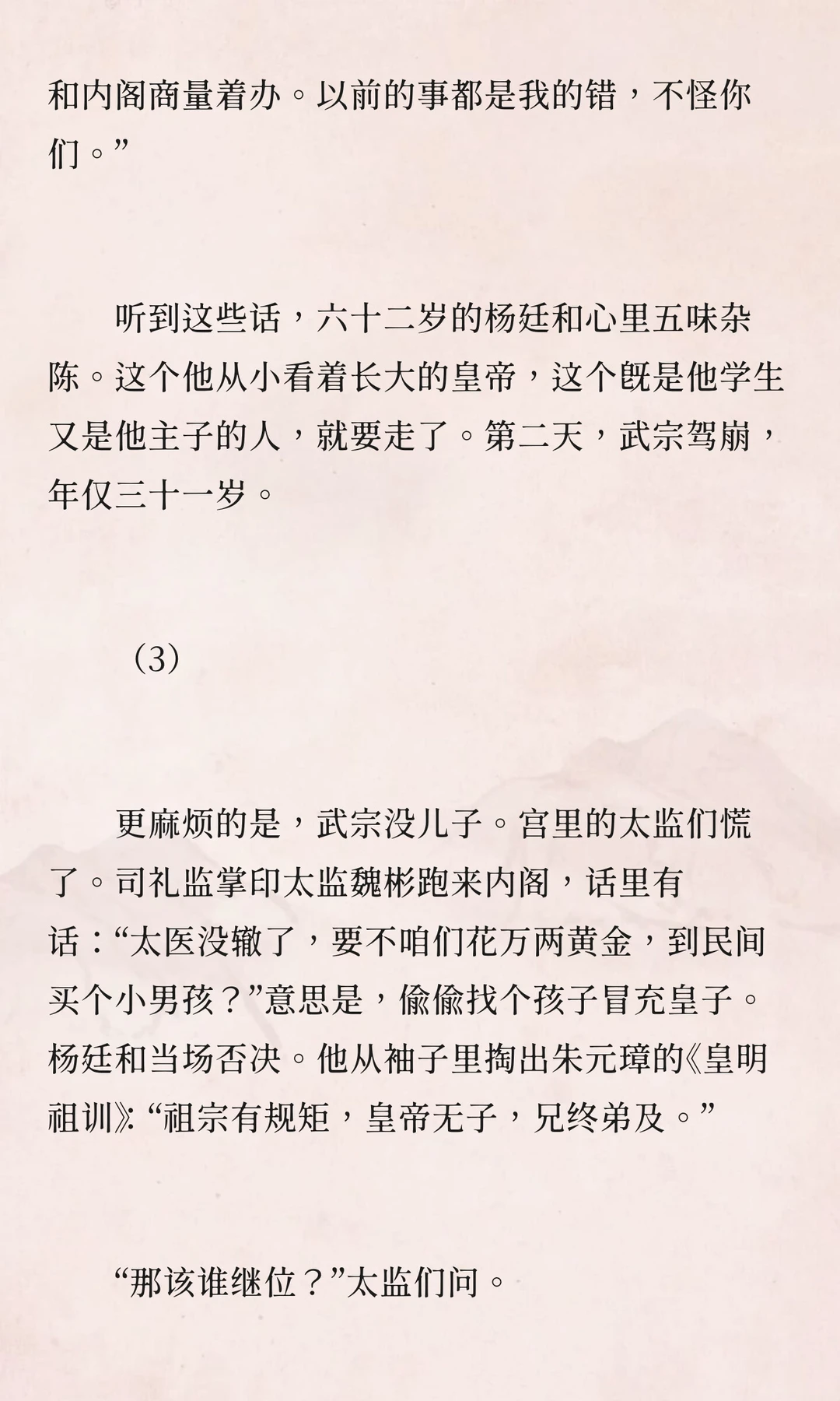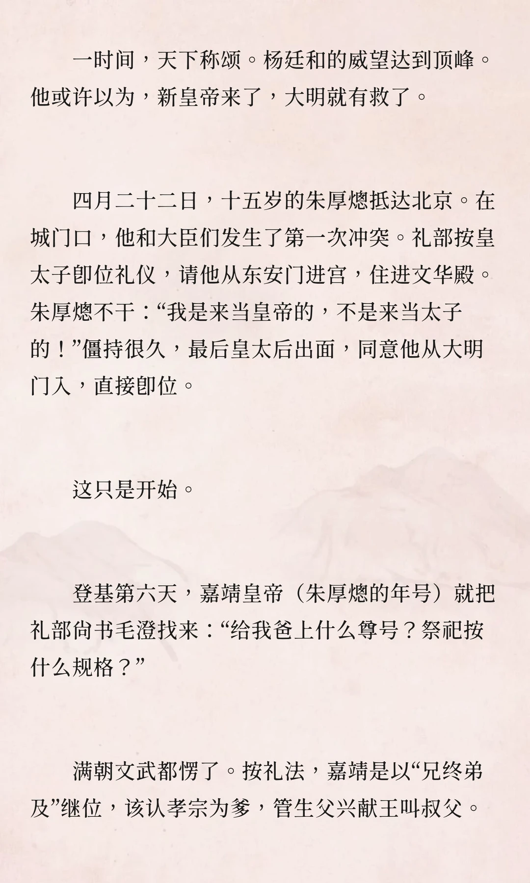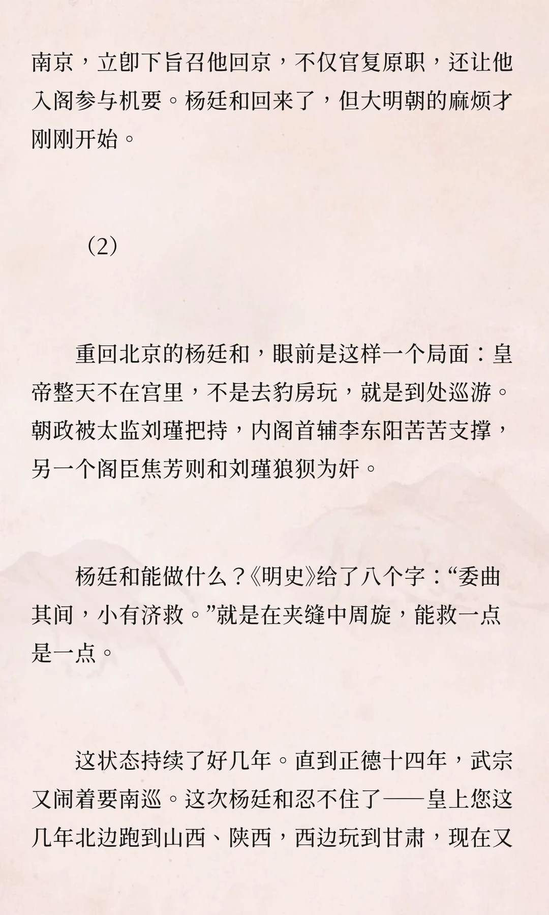 杨廷和,明朝内阁首辅,辅佐武宗、嘉靖两朝,力挽狂澜。晚年因“大礼议”被削职,次子杨慎被发配云南。杨廷和的一生,见证了明朝从盛到衰。