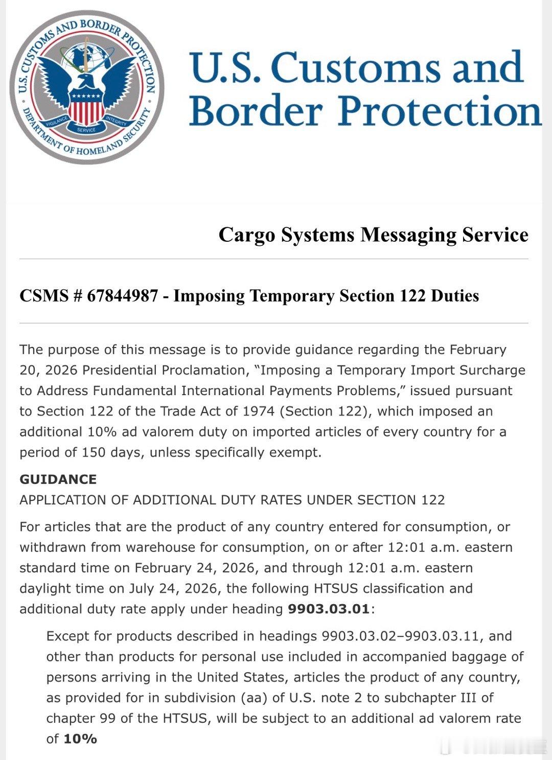 特朗普最新重磅宣示:全球额外10%关税已签署生效!原有232、301、国家安全关