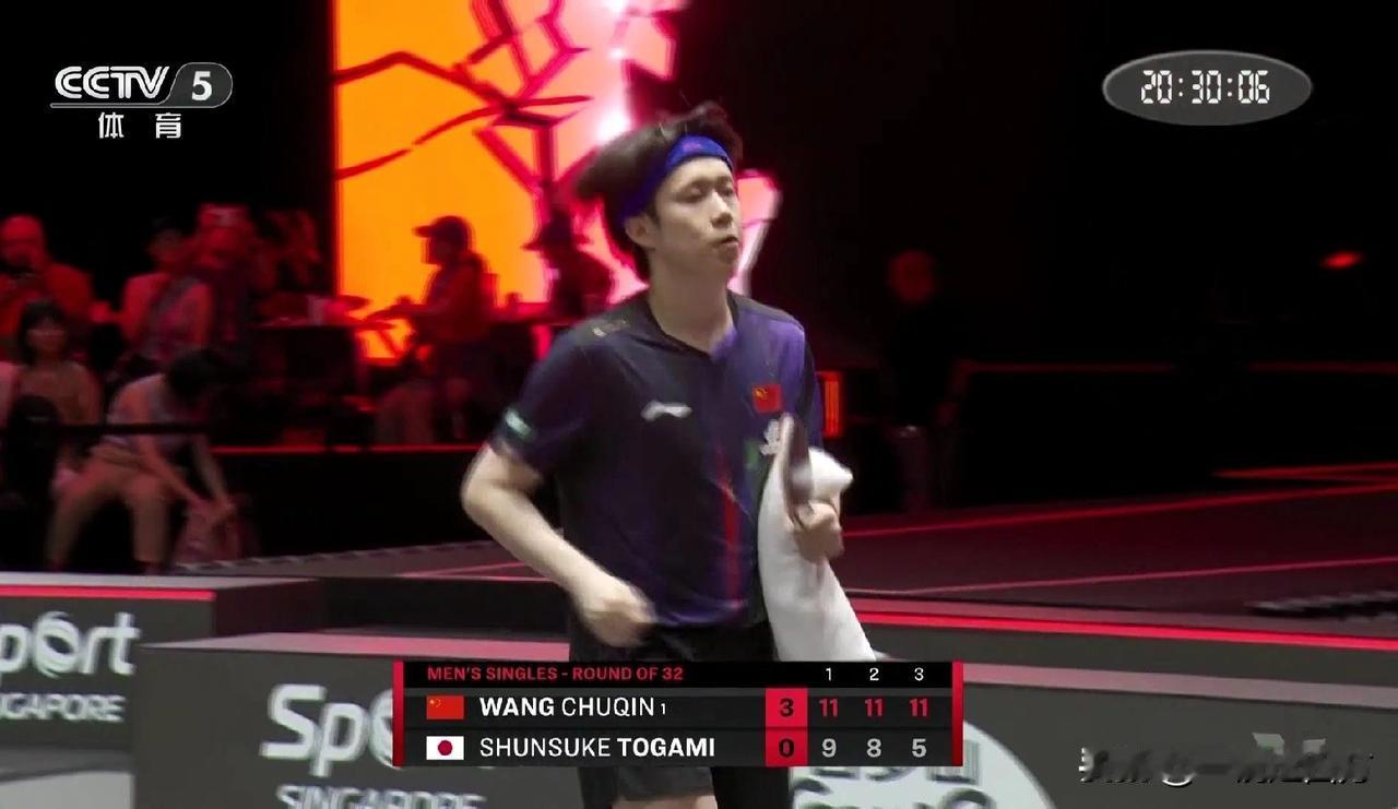 刚刚结束的一场世乒联大满贯赛新加坡站男单第二轮,王楚钦以11-9、11-8、11-5直落三局完胜日本的户上隼辅,取得交手七战全胜,顺利晋级16强。至此,今天出战的三位国乒男单球员取得两胜一负,林诗栋3-0格拉斯门科周启豪负于17岁的法国新星科顿。