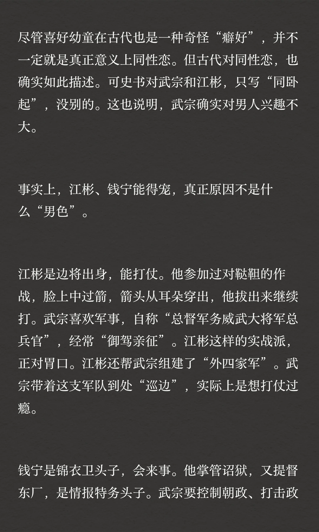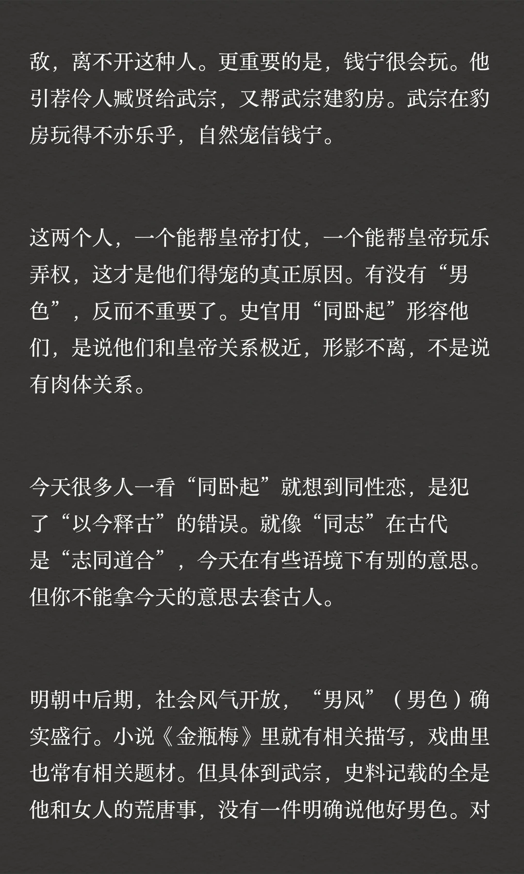 明武宗朱厚照与钱宁、江彬的“同卧起”关系,常被解读为同性恋,但历史记载显示,这更多反映的是皇帝与近臣关系的亲密与忠诚,而非x取向。
