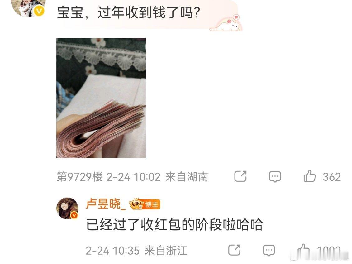 卢昱晓文字的力量卢昱晓的文字是有温度和力量的,她用心回应着每一位粉丝,大家相互治愈着,温暖着,这就是双向奔赴吧!爱着如此温柔又善良的女孩,粉丝也很幸福吧春节刷到宝了马年大吉