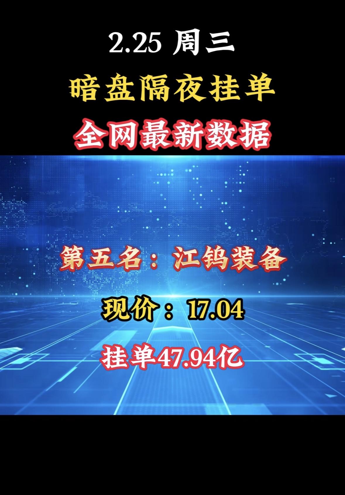 2月25日暗盘隔夜挂单数据揭晓,现价17.04,挂单47.94亿! 洲际油气暗盘挂单量居首,市场关注度飙升,现价表现亮眼,资金博弈激烈。