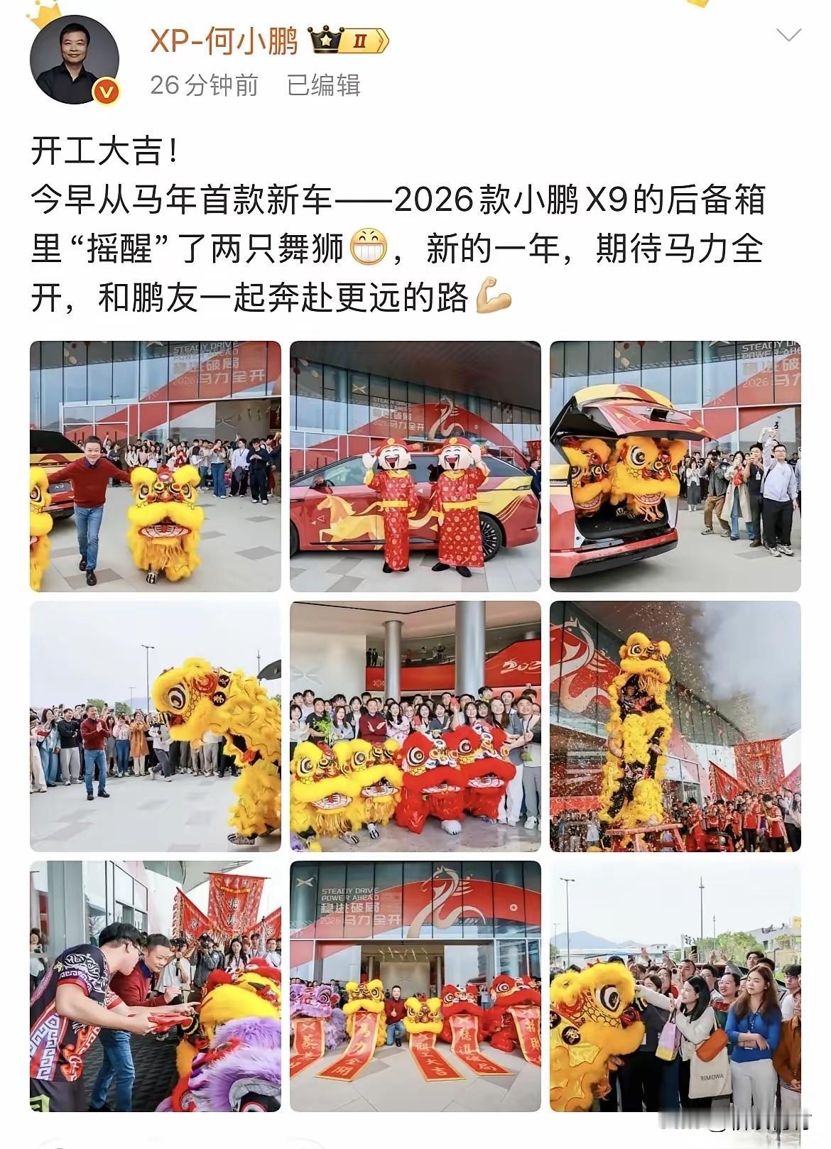 小鹏的开工仪式跟小米的越来越像了!都摆了一台车! 大年初八开工,雷军和何小鹏都发圈宣传,都有喜气满满的员工互动仪式,而且都放了一台车来宣传,小米放的是全新SU7,大红的颜色与过年气氛很搭。小鹏也放了一台小鹏G9。 毫无疑问这两家公司放的这两台车肯定都是今年的重点车型,就看看能不能火起来吧。 现在营销都卷到开工仪式了,开年就火拼,看来今年又是狂卷的一年啊!