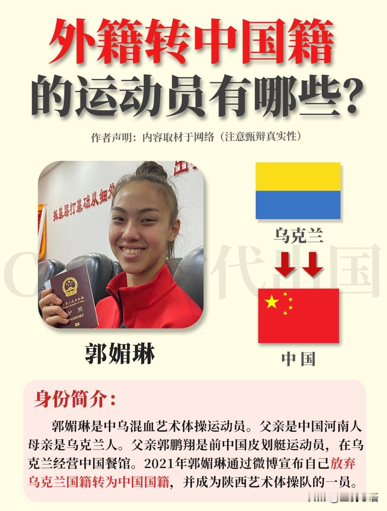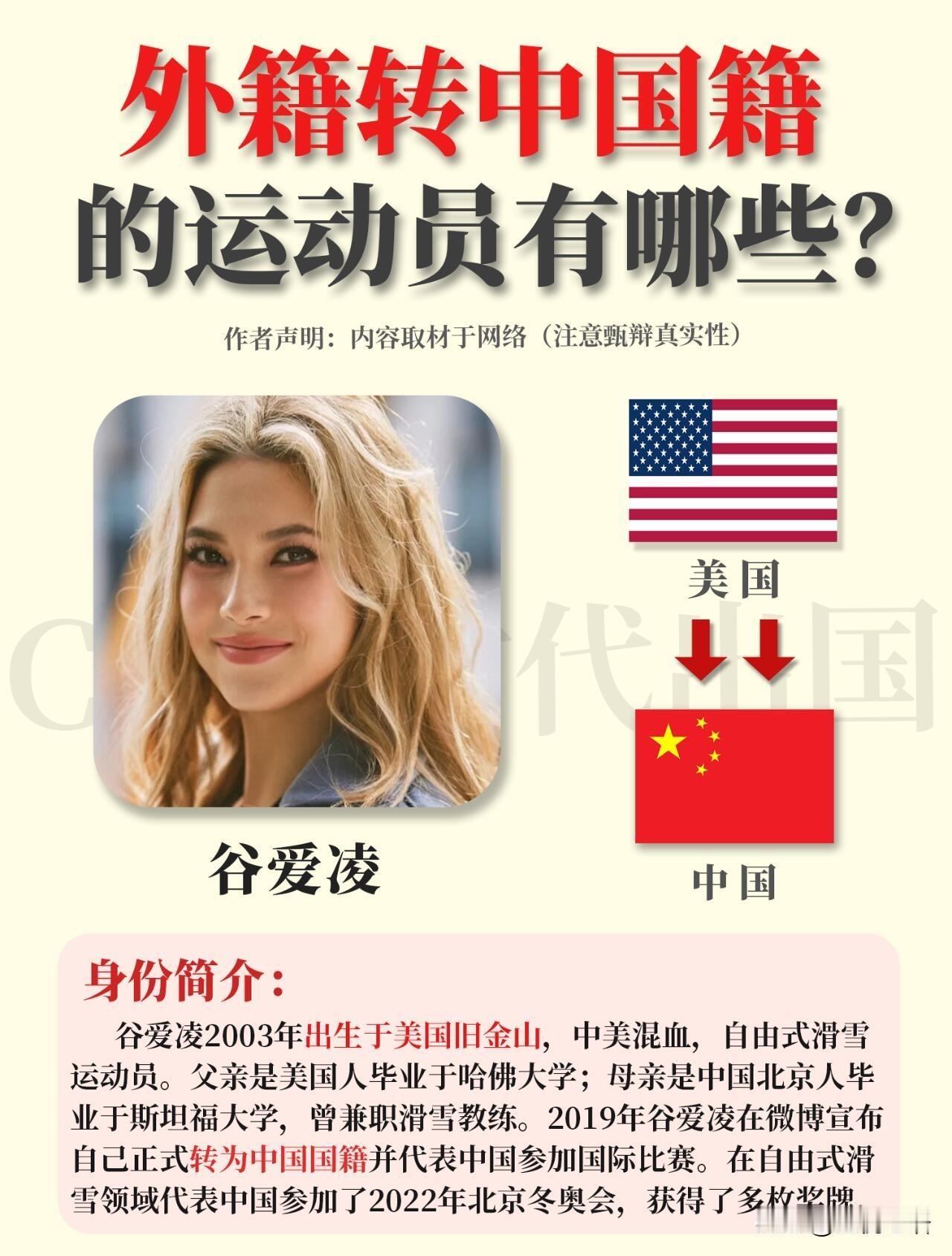酸人家镀金的闭嘴! 这5位入籍中国的运动员,个个凭实力说话 别再当键盘侠乱喷了 总有人张嘴就酸人家入籍是来捞金、来镀金 先看看人家拿的硬成绩,再张嘴! 谷爱凌,原美国籍,自由式滑雪选手 2019年官宣入籍中国 北京冬奥狂揽2金1银,直接改写中国滑雪历史。 朱易,原美国籍,花样滑冰选手 16岁拿下全美花滑新人组冠军 2019年放弃美籍入籍 代表中国征战冬奥赛场。 华天,原英国籍,马术三项赛选手 放弃英国贵族身份毅然入籍 中国奥运马术史上第一人 硬生生填补了国内项目空白。 林珊,原美国籍,花样滑冰选手 2019年入籍中国,国际赛场屡创佳绩 凭实力为中国花滑挣足了底气。 郭媚琳,原乌克兰籍,艺术体操选手 2021年放弃乌克兰国籍入籍中国 扎根国内赛场,拼尽全力为中国出战。 人家放弃的是现成的优渥条件, 赌上的是自己的职业生涯。 为中国体育拼过、闯过、拿过实打实的成绩。 那些只会躲在屏幕后敲键盘酸的 根本没资格对他们指手画脚。 每一个身披国家队战袍 为祖国出战的运动员 都值得我们无条件尊重!