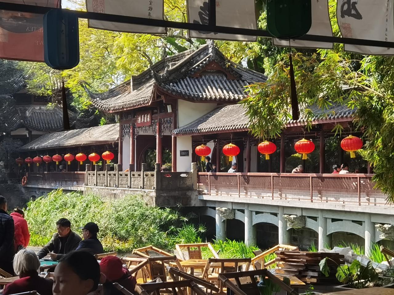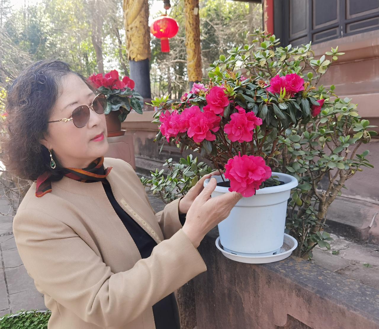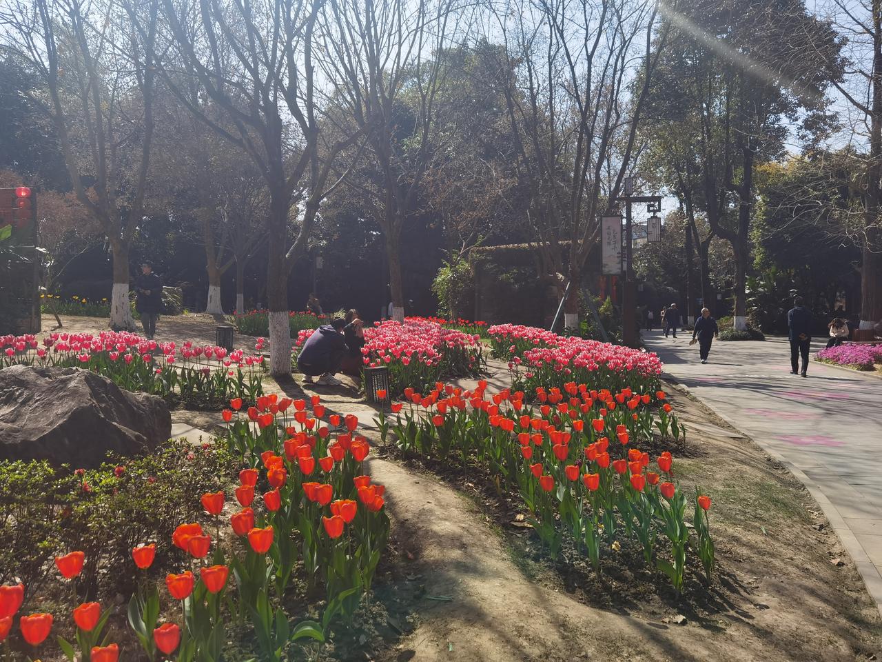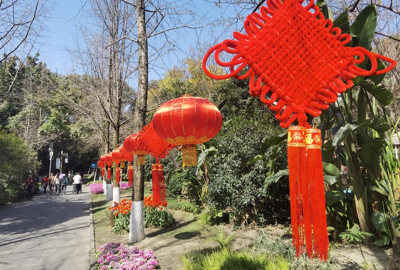 大年初八,成都天好艳阳,气温24度,我走出家门,到文化公园徜徉。 来到公园,在春日暖阳与花香弥漫的簇拥下,呈现了一幅古韵十足勃勃生机的画卷。 串串大红灯笼与中国结垂落于树之树之间,与园内精心布置的“马年大吉”装饰相映成趣,渲染出浓厚的节日氛围。 我来到公园“一摇就灵”板画面前,用手摇起铃铛,它发出清脆悦耳叮当叮当声音,说是心里想什么,就祝愿什么…… 公园内春意盎然,鲜花娇艳,花香弥漫,沁人心脾。沐浴阳光,我穿件T恤衫,都觉得浑身暖洋洋的。我来到层层叠叠,交织成一片绚烂的花海中,喜悦之情油然而生。 节后公园游人不太多,但也有不少市民在茶馆里围坐品茶,闲话家常,休闲漫步,沉浸式感受马年春年的独特韵味。