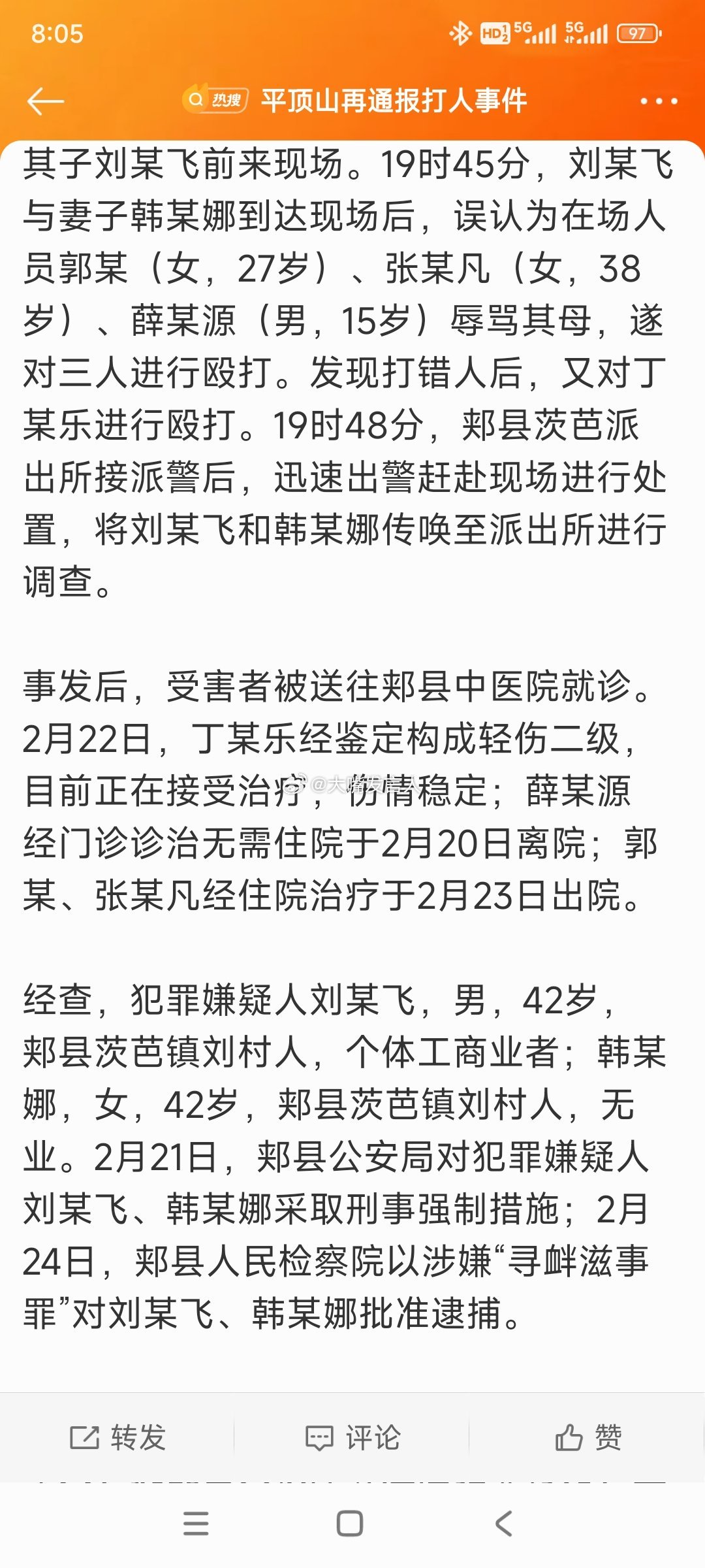 对平顶山夫妻打15岁女孩事件的第二份通报,不仅补充了刘某飞韩某娜对三名劝架者(含
