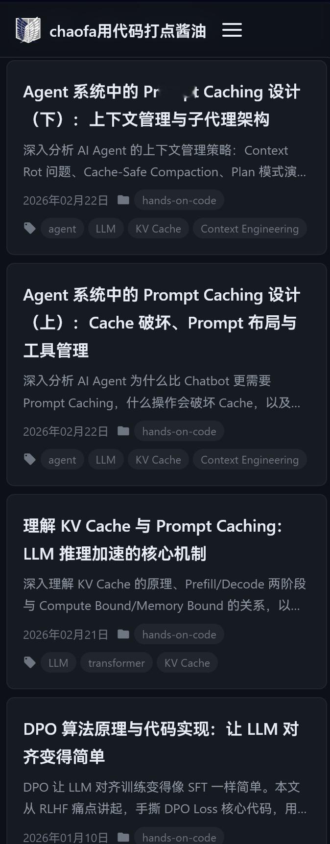 系列博文:Agent 系统中的 Prompt Caching 设计。“ Prompt Cache 不只是一个省钱技巧,它是 Agent 系统架构设计的核心约束。”本文有两篇:(上):Cache 破坏、Prompt 布局与工具管理yuanchaofa.com/post/prompt-cache-design-for-llm-agents读完本文,你将了解: 从 Prompt Engineering 到 Context Engineering 的范式转变 为什么 Agent 比普通 Chatbot 更需要 Prompt Caching 什么操作会破坏 Cache(比你想象的多) Prompt 布局与动态信息管理的最佳实践 工具管理的三种 Cache-aware 方案对比