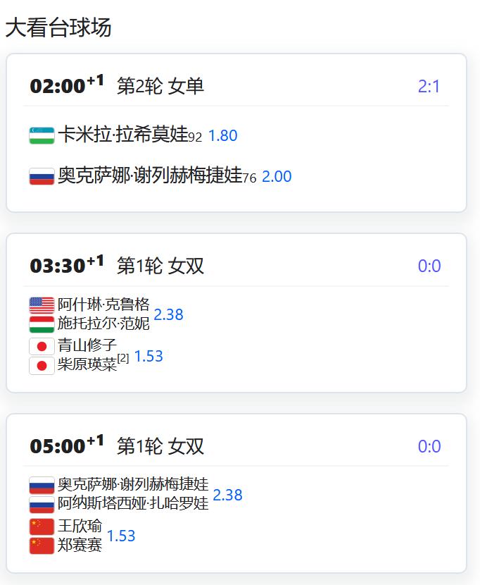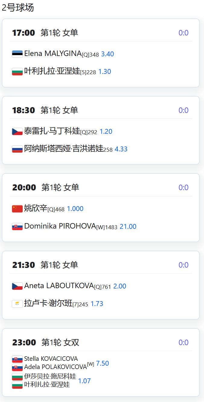 ATP500赛阿卡普尔科站,男单第一轮,从资格赛突围的吴易昺将不早于北京时间今天上午11点对阵3号种子鲁德; WTA500赛梅里达站,女单第一轮,从资格赛突围的张帅将对阵美国老将勒普琴科; 女双第一轮,丰硕/布鲁克斯对阵皮特尔/曾丽美; ATP500赛迪拜站,男双四分之一决赛,商竣程/布勃利克将对阵3号种子海利厄瓦拉/帕滕; WTA250赛奥斯汀站,女双第一轮,郑赛赛/王欣瑜将对阵谢列赫梅捷娃/扎哈罗娃; W75特尔瓦纳,女单第一轮,从资格赛突围的姚欣辛将对阵外卡球员皮隆普娃; W35阿卡迪亚,女单第一轮,从资格赛突围的韩江雪将对阵3号种子沃尔夫。