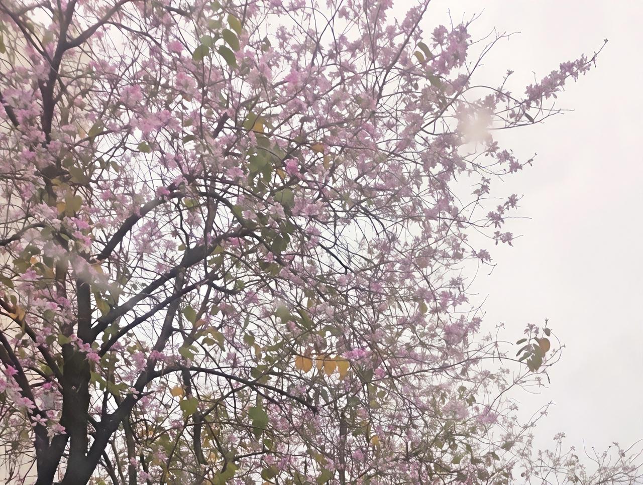 北方下雪的地方,绿化树基本都是光秃秃的,只有不下雪的地方,广州到处都可以赏花,看