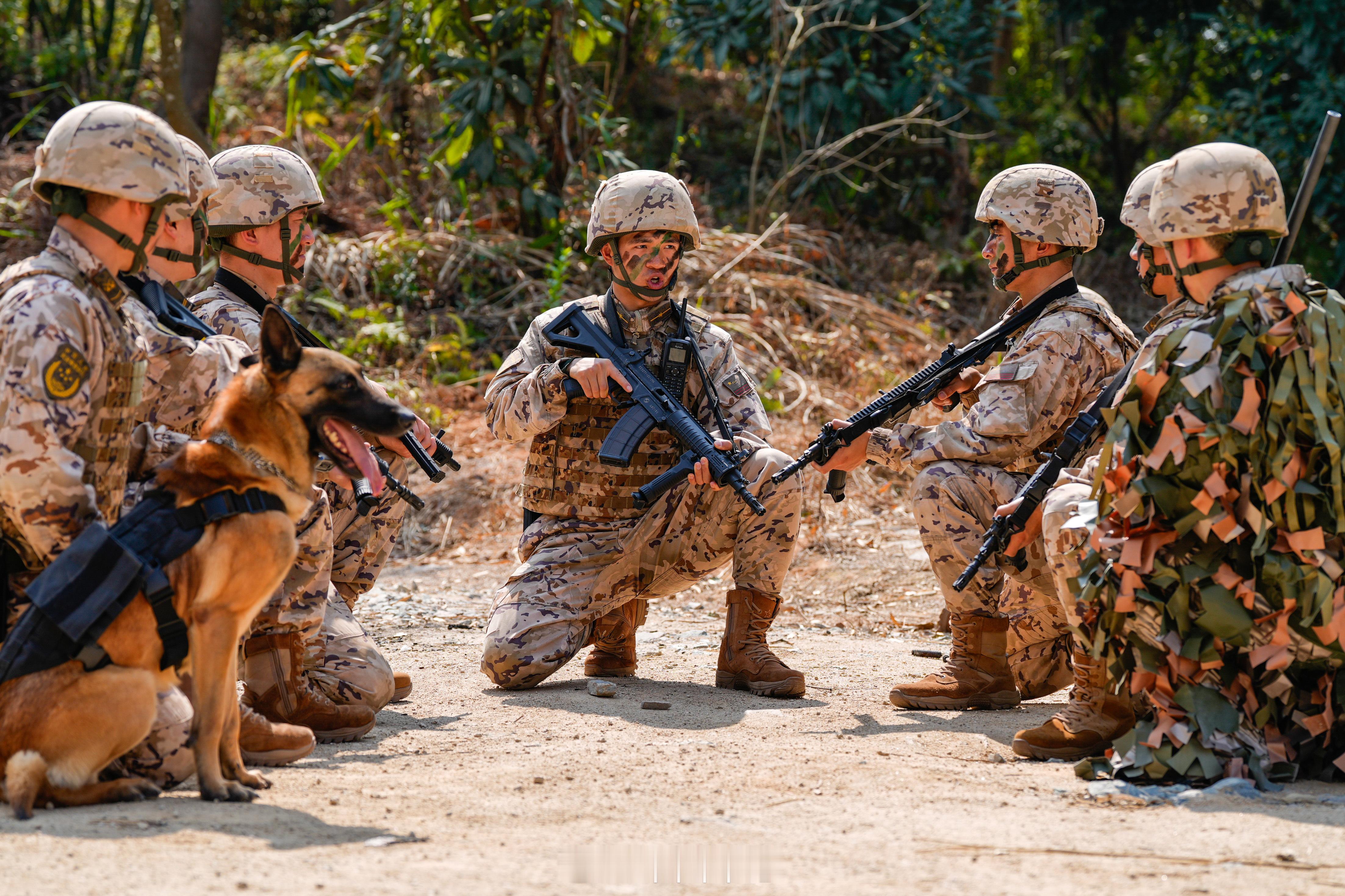 【机器狗与警犬协同作战】近日,武警福建总队某支队组织山林地捕歼演练。官兵们闻令而动,快速集结奔赴复杂山林地域,依托无人机侦察、多路封控、隐蔽渗透等战术,对“不法分子”实施立体合围、精准清剿。演练全面检验了官兵快速反应、协同作战和应急处突能力。(寇树玉 涂创 周伯臻 郑力铭 王威)