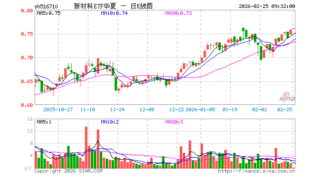 新材料ETF华夏(516710)业绩比较基准为中证新材料主题指数收益率,管理人为华夏基金管理有限公司,基金经理为司帆,成立(2021-08-04)以来回报为-24.25%,近一个月回报为0.01%。