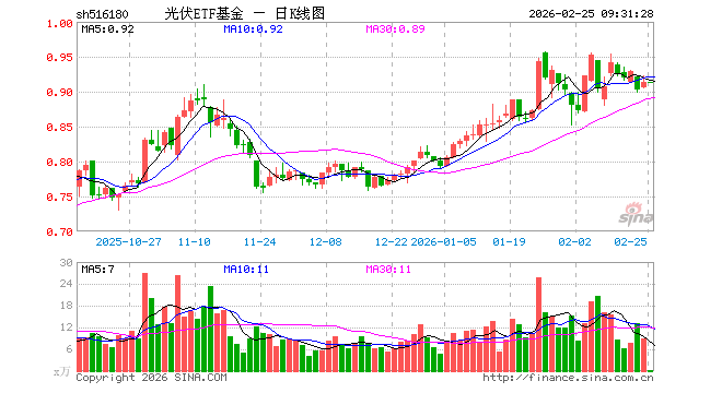 2月25日,光伏ETF基金(516180)开盘涨0.00%,报0.914元。光伏ETF基金(516180)重仓股方面,特变电工开盘涨0.07%,隆基绿能涨0.22%,阳光电源跌0.67%,TCL科技跌0.42%,迈为股份跌0.32%,德业股份涨0.29%,正泰电器跌0.53%,TCL中环涨0.10%,捷佳伟创跌0.41%。