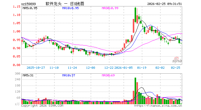 2月25日,软件龙头ETF(159899)开盘涨0.00%,报0.929元。软件龙头ETF(159899)重仓股方面,科大讯飞开盘跌0.80%,金山办公涨0.40%,同花顺涨0.05%,指南针涨0.37%,恒生电子涨0.13%,拓维信息涨1.55%,润和软件涨0.12%,三六零跌0.47%,深信服涨1.70%。