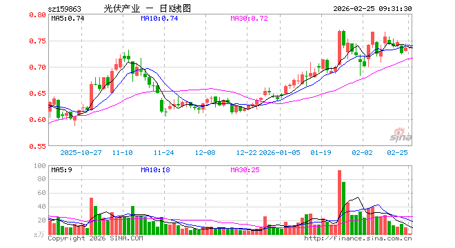 2月25日,光伏ETF鹏华(159863)开盘跌0.14%,报0.734元。光伏ETF鹏华(159863)重仓股方面,特变电工开盘涨0.07%,隆基绿能涨0.22%,阳光电源跌0.67%,TCL科技跌0.42%,迈为股份跌0.32%,德业股份涨0.29%,正泰电器跌0.53%,TCL中环涨0.10%,捷佳伟创跌0.41%。